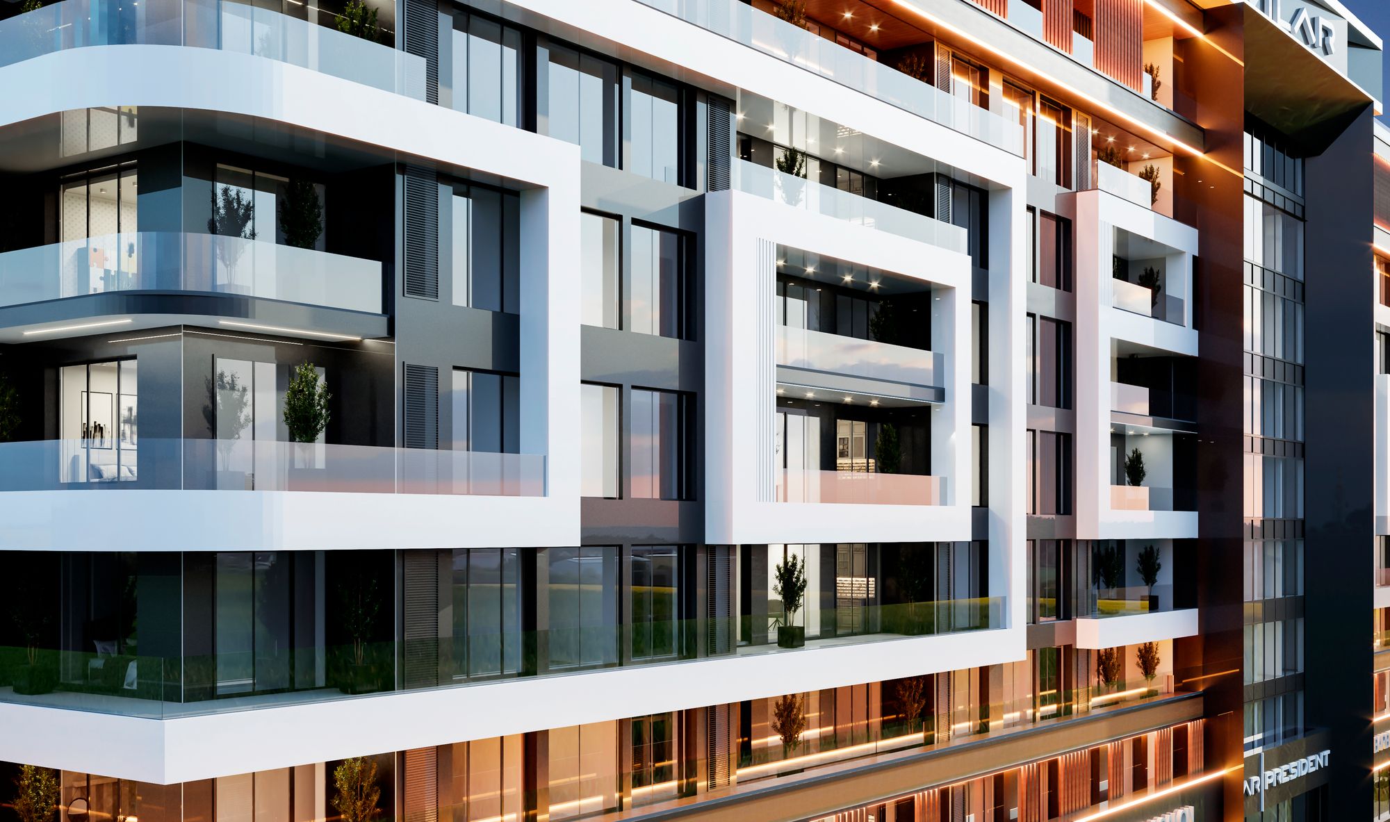 Vilar President – бул 151 батирди камтыган 9 кабаттуу турак жай комплекси, аянттары менен айырмаланат: аянты 68,65 чарчы метр болгон бир бөлмөлүү жайлуу студиялардан тартып, 240,66 чарчы метр аянттагы төрт бөлмөлүү кенен студияларга чейин. Курулушка алдыңкы технологиялар колдонулуп, бекемдик жана коопсуздуктар эске алынган. Турак жайдын ар бир деталы жашоочулардын муктаждыктарын канааттандыруу үчүн ыңгайлаштырылган.