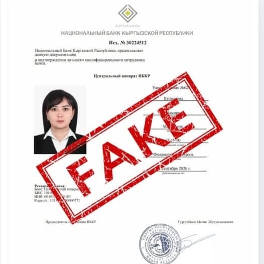 Улуттук банктын кызматкерлеринин атынан тариздетилген жасалма күбөлүктөрдү көрсөтүп, жарандарды алдоо учурлары уланып жатат. Бул тууралуу Улуттук банктан кабарлашты.