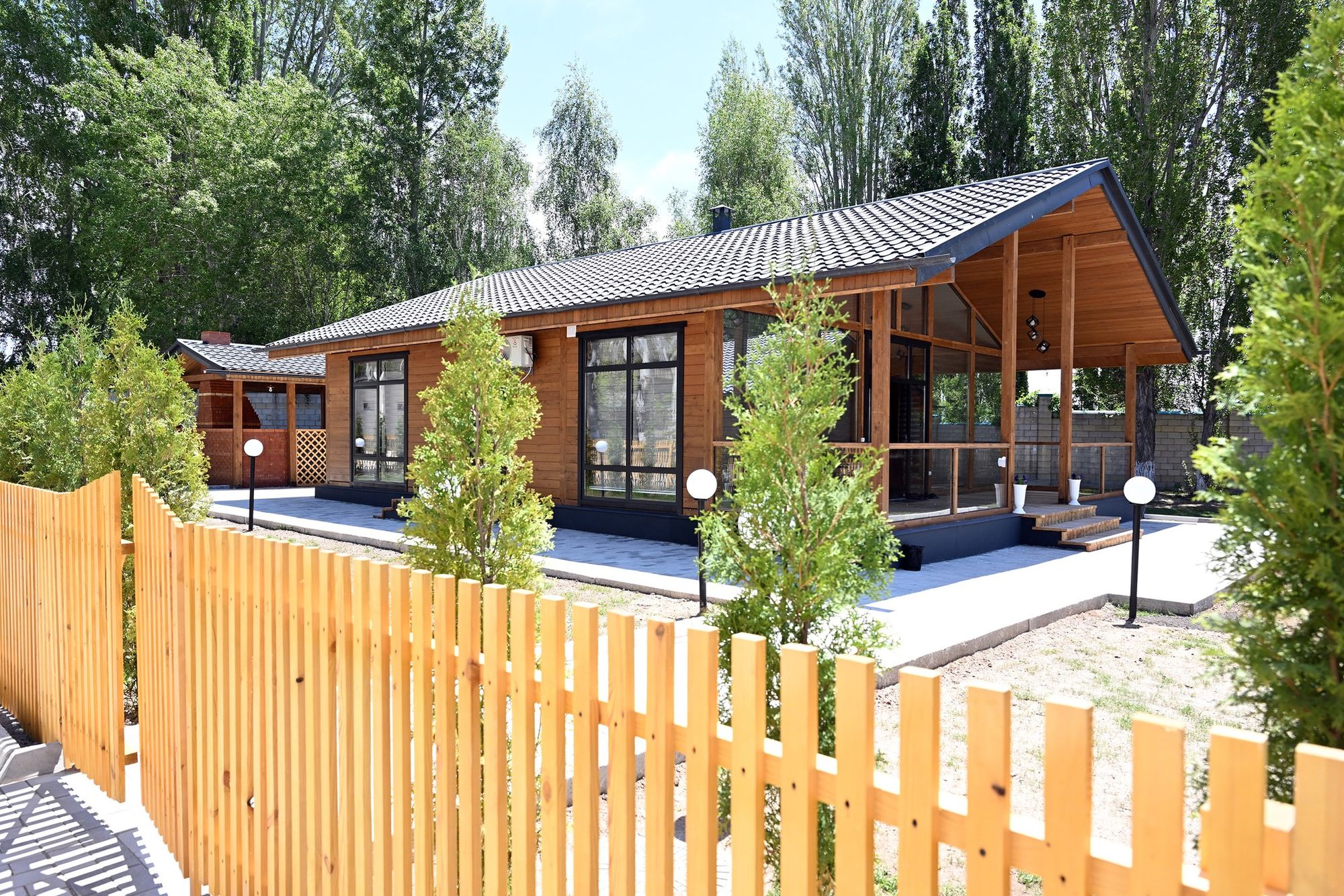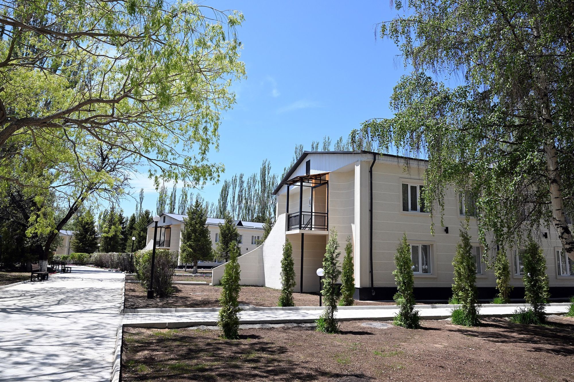 Бул жерде заманбап ыңгайлуу корпустар, коттедждер, ден соолукту чыңдоочу жай, конгресс-холл, пансионаттын жашыл аймагы курулган, анда балдар ойноочу аянтчалары да бар.