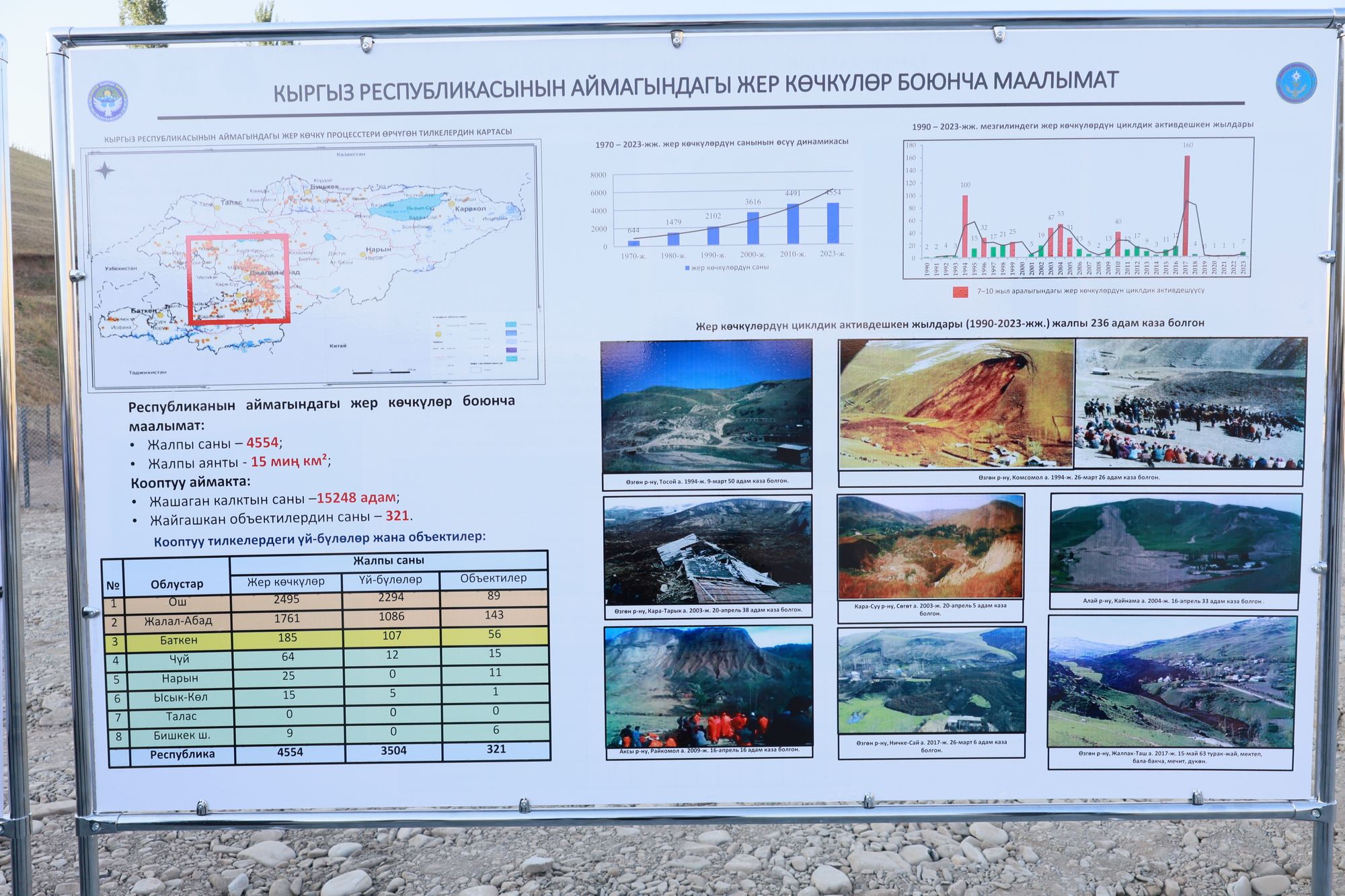 Эгемендүүлүк алгандан бери өлкө көп жер көчкүлөрдү башынан өткөрдү. Алардын 18зи калктуу конуштарга түшүп, анын кесепетинен 236 жаран каза болгон, 277 турак жай жана 7 социалдык объект кыйрап калган. Министрлер кабинетинин Азия өнүктүрүү банкы менен биргеликте көрүп жаткан бүгүнкү чаралары мындай аймактарда жашоо коркунучун кыйла азайтат», – деп жыйынтыктады Акылбек Жапаров.