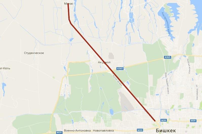 · «Манас» аэропортунун жолу Бишкек шаарынын чегине чейин;
