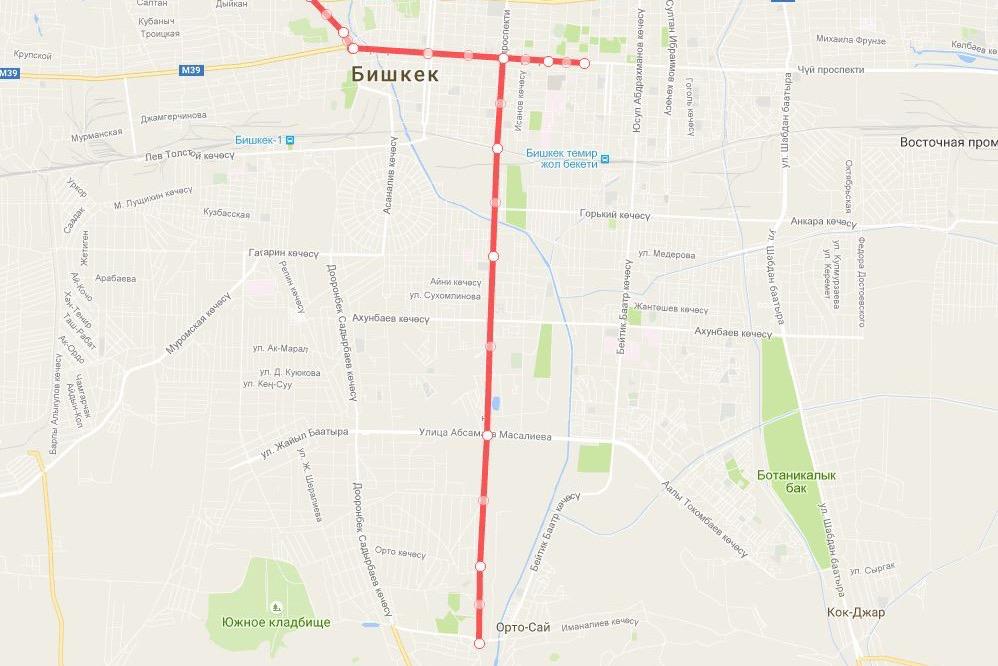 · Манас жана Ч.Айтматов көчөлөрү түштүктү карай, «Ала-Арча» мамлекеттик резиденциясына чейинки бөлүгү;