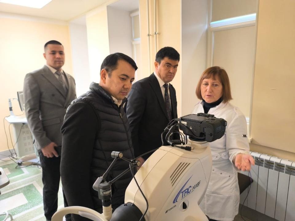 Ушундай эле жолугушуу Клиникалык офтальмологиялык ооруканада уланды. Анда депутаттар Омск облусунун саламаттыкты сактоо министринин орун басары Дмитрий Рябиков менен жолугушту. Жолугушууга саламаттыкты сактоо жаатындагы алакаларды арттыруу маселелери талкууланып, кызматташтыктын артыкчылыктуу багыттары боюнча сөз болду. Өз кезегинде Клиникалык офтальмологиялык оорукананын директору Александр Выходцев мекеменин ишмердүүлүгү тууралуу кеңири маалымат берип, Кыргызстанда ооруканын өкүлчүлүгүн ачууга даяр экендиктерин белгилешти.