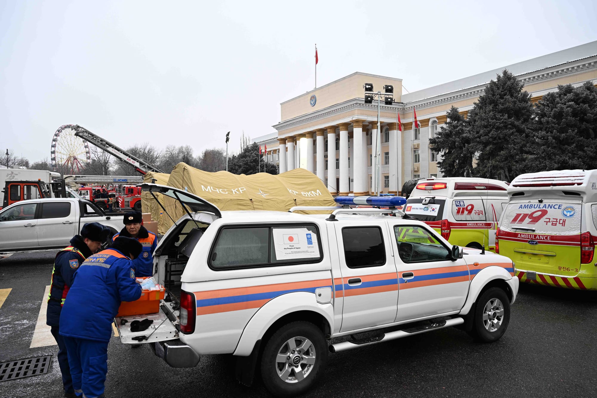 Мекемеге 28 даана атайын техника, анын ичинен 10 даанасы Белоруссиядан алынып келинген БЕЛАЗ-7540Б үлгүсүндөгү чоң самосвал, 4 заманбап медициналык жана 4 өрт өчүрүүчү машина жана башка заманбап куткаруу техникасы берилди. Куткаруу шаймандары алууга республикалык бюджеттен 35 млн сом бөлүндү.