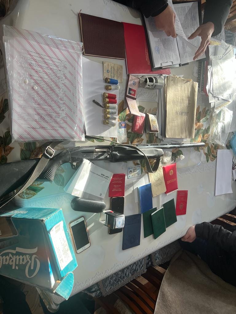 Тинтүү иштери учурунда мыйзамсыз сакталган курал-жарактар, МП-155 үлгүсүндөгү мылтык, анын октору, Калашников автоматынан 5х45 калибриндеги ок-дарылары жана ошондой эле «Болот» соода-базар комплексинине тиешелүү документтер табылып алынды.