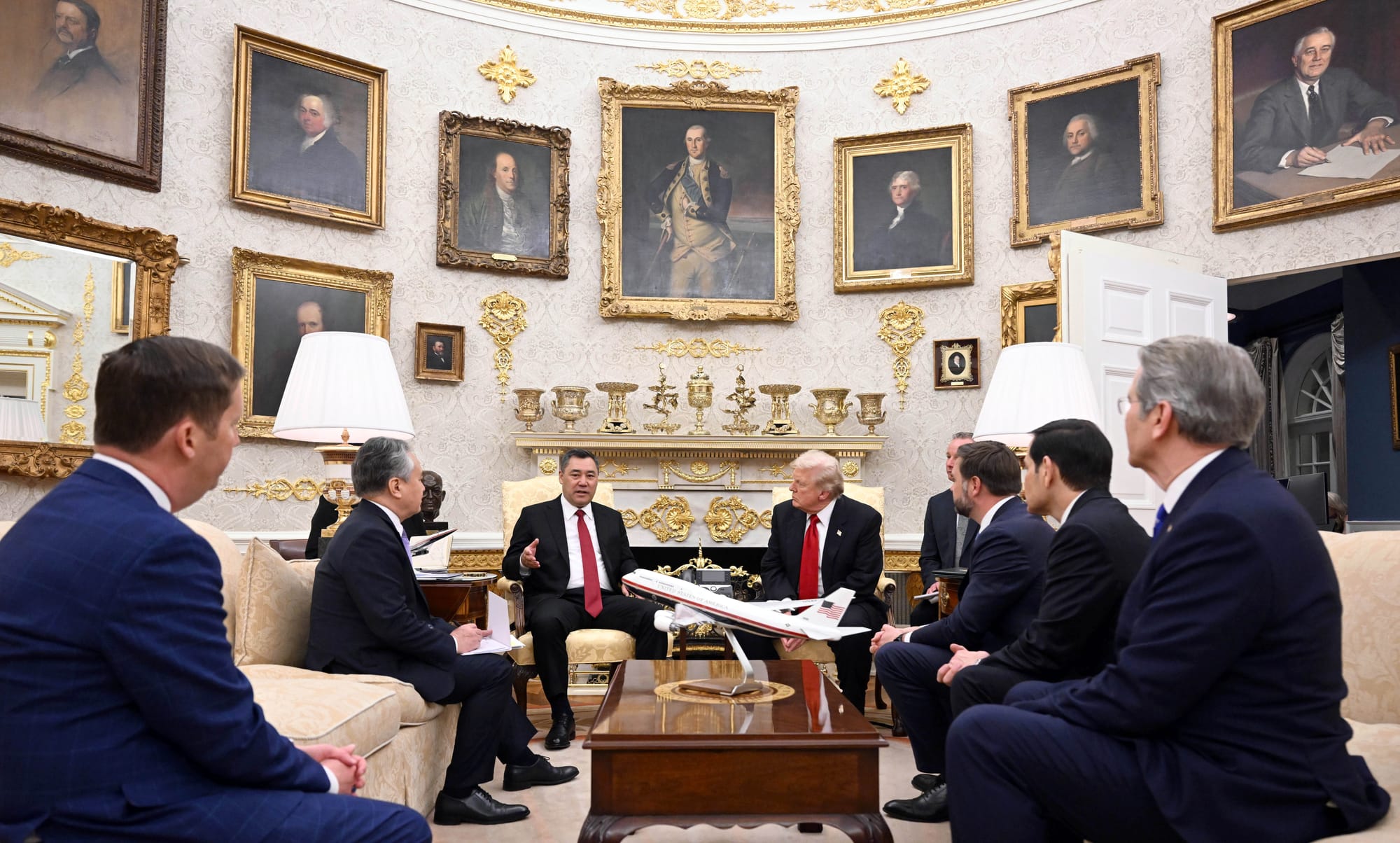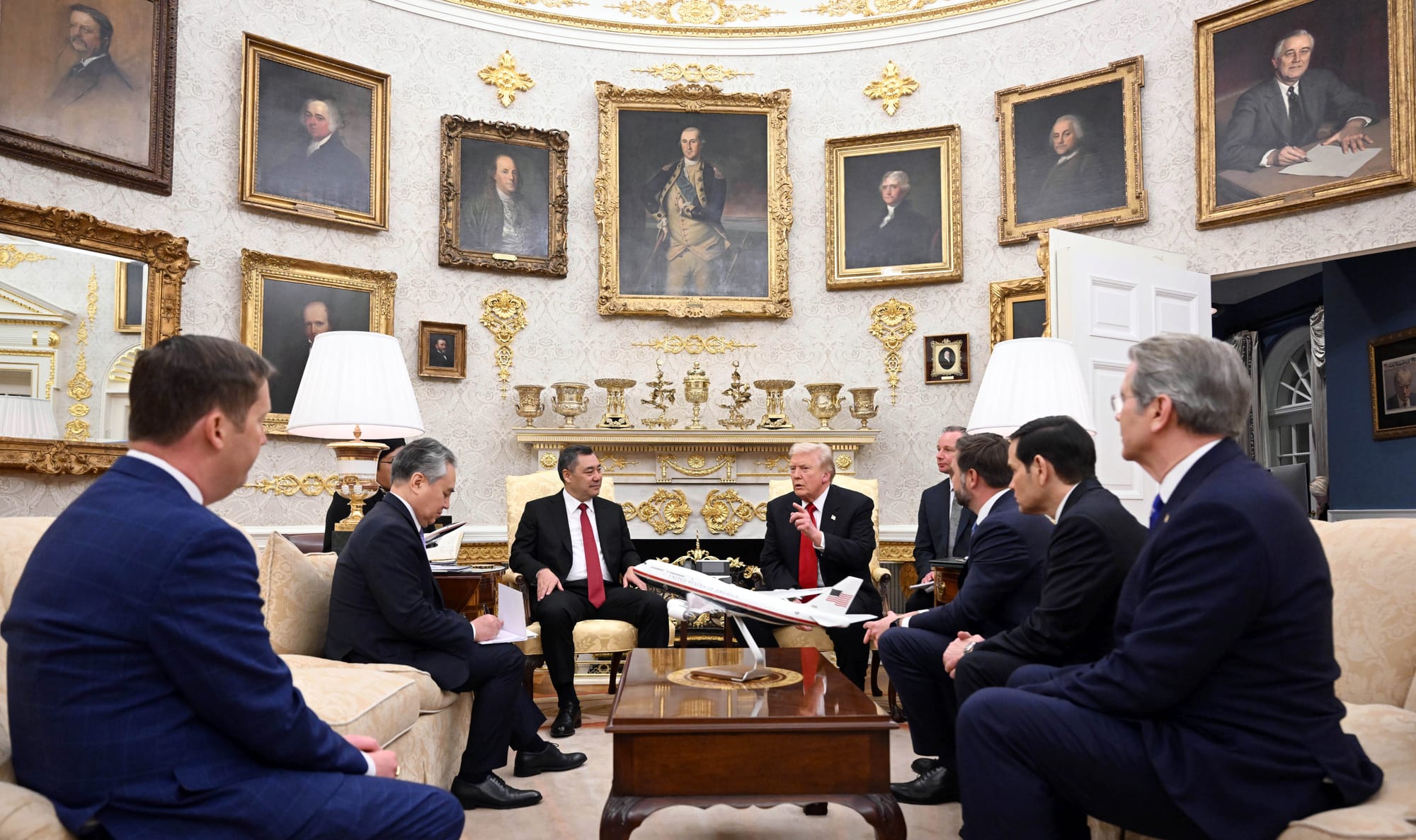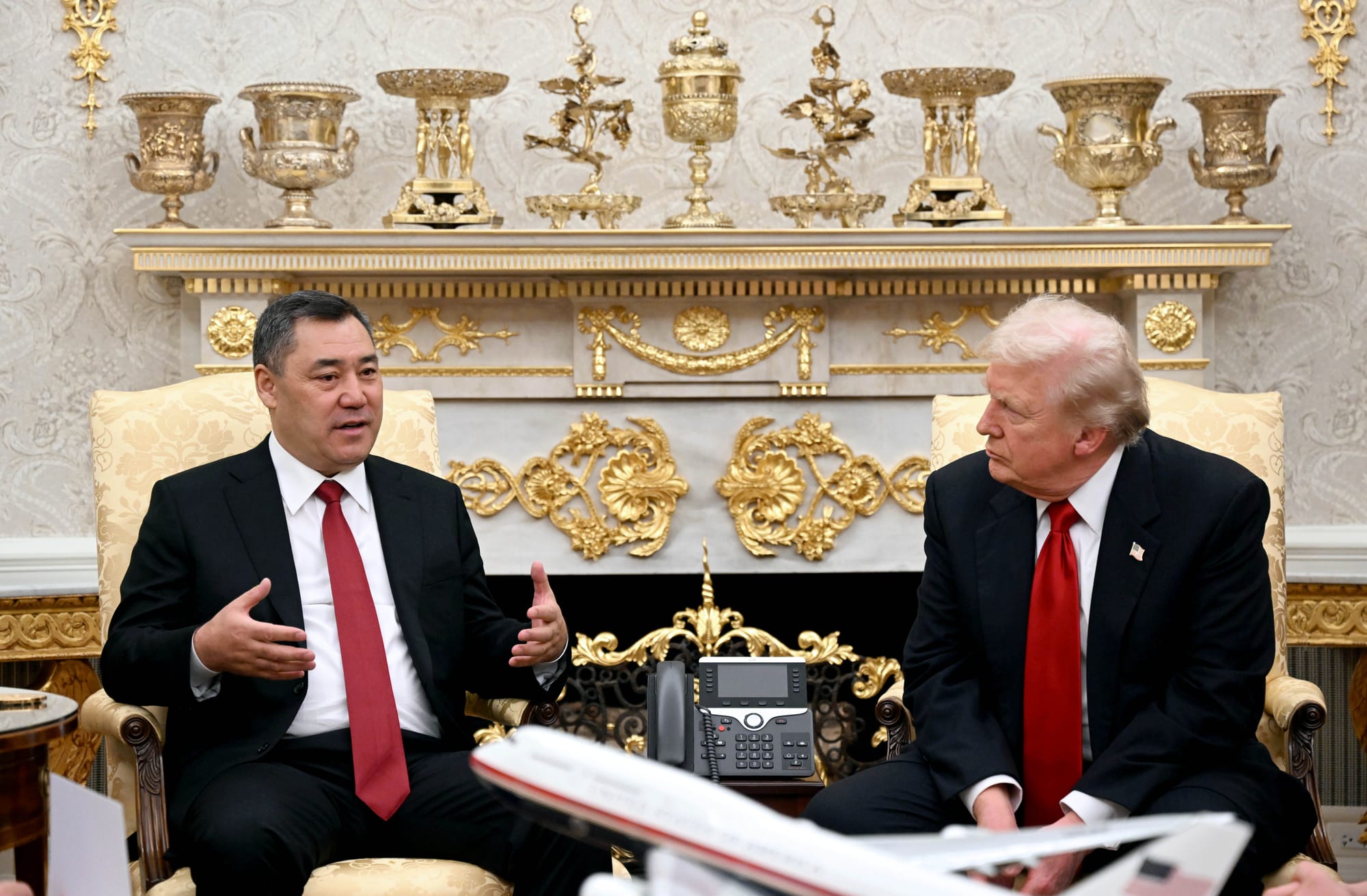 Өз кезегинде Дональд Трамп Садыр Жапаровду жылуу тосуп алып, эки жактуу мамилелердин ырааттуу өнүгүп жатканын белгиледи.