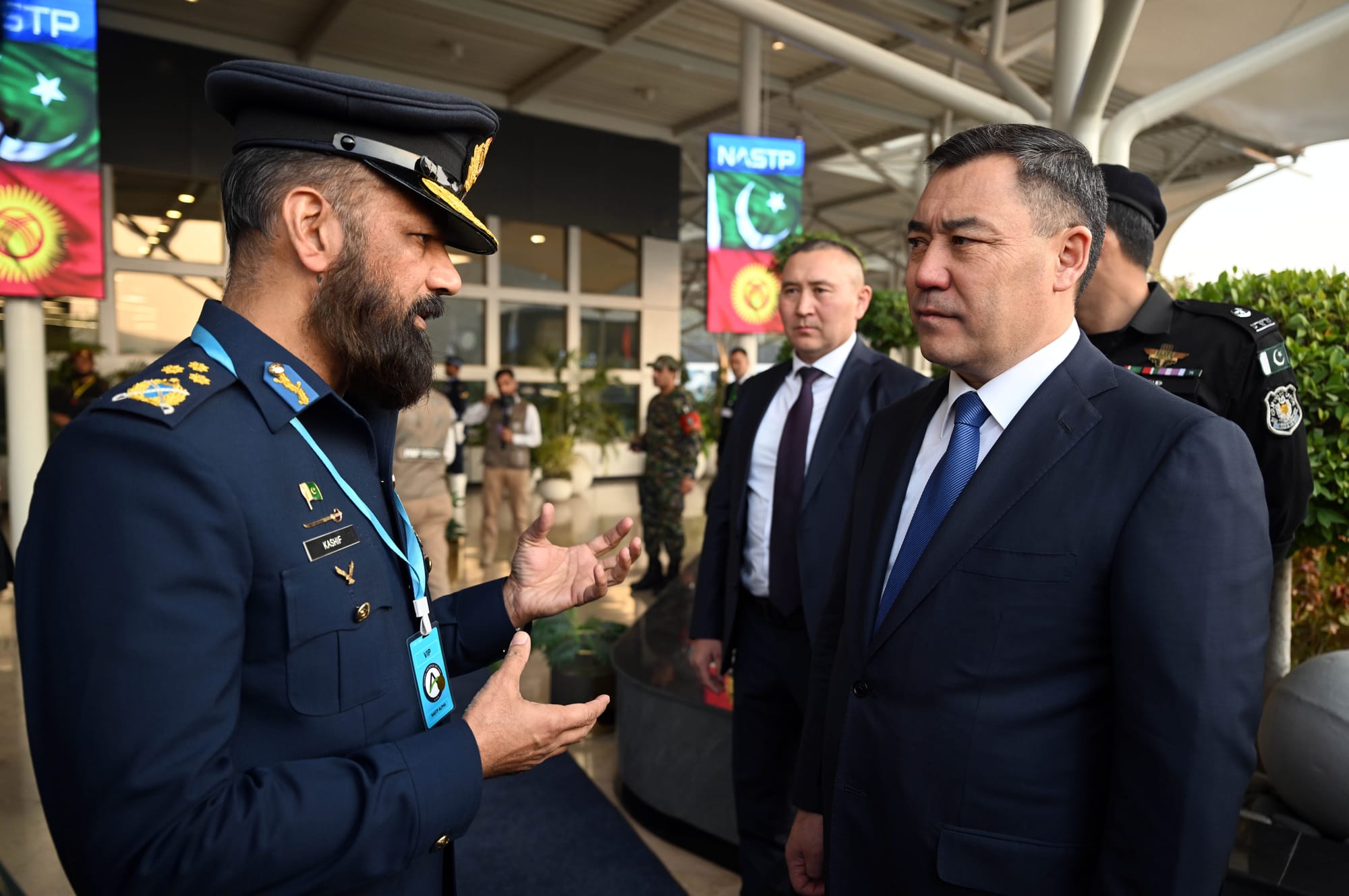 Президент Садыр Жапаров Пакистан Ислам Республикасына болгон мамлекеттик сапарынын алкагында Исламабад шаарындагы Аэрокосмостук илим жана технологиялар улуттук паркында (NASTP) аскердик көргөзмө менен таанышты.
