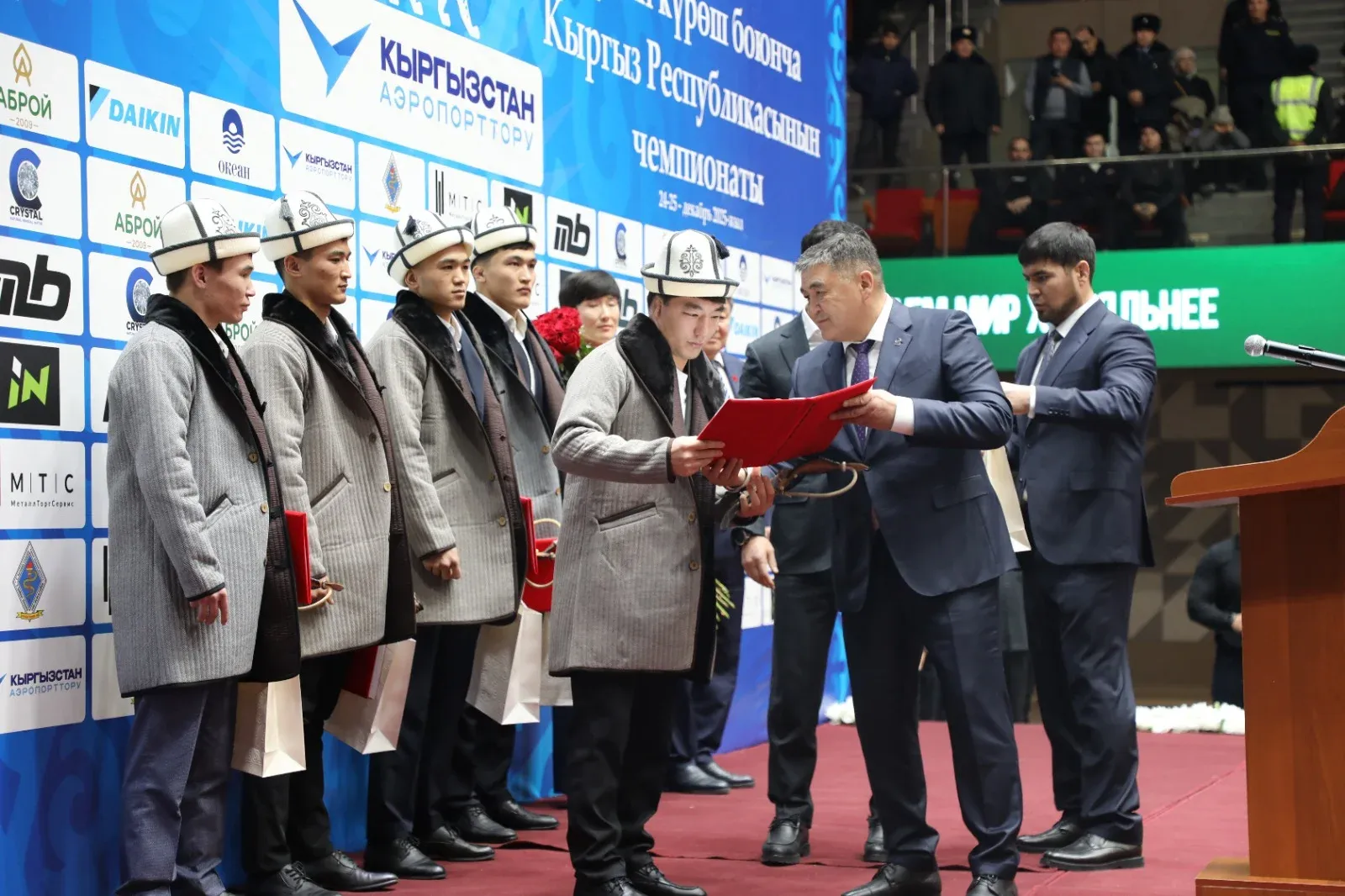 Анда Ташиев чемпионаттын катышуучуларын жана жеңүүчүлөрүн куттуктап, аларга спорттук ийгиликтерди каалады. Ошондой эле салтанаттуу аземдин жүрүшүндө буга чейин, дүйнөлүк аренада ийгиликтерди жараткан 6 спортчуга өлкө башчысы Садыр Жапаровдун тапшырмасына ылайык, батирлерди белекке берди.