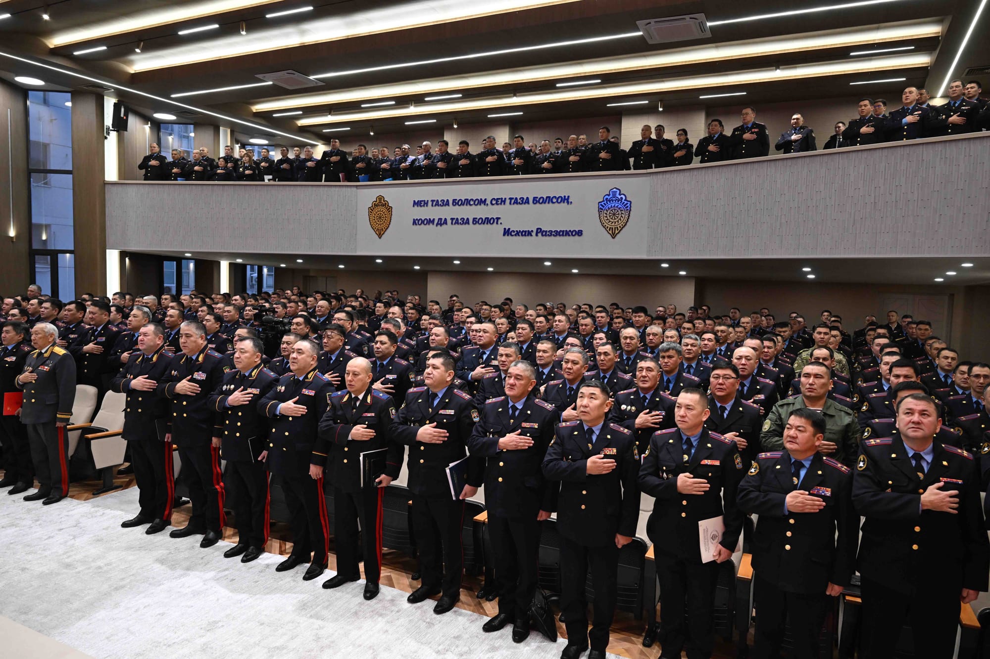 Адылбек Касымалиев Ички иштер министрлигинин өздүк курамына эл аралык жогорку деңгээлдеги иш-чаралар учурунда коопсуздукту камсыз кылганы үчүн ыраазычылык билдирип, ИИМ калк менен түз иштеген маанилүү мамлекеттик орган экенин белгиледи.