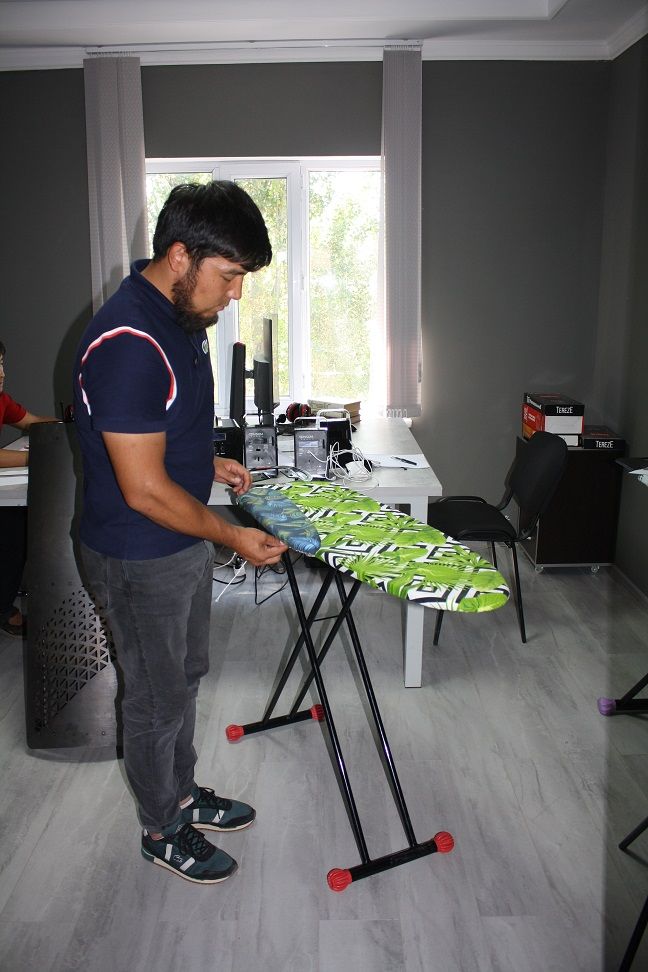 Бирок биз бул көйгөйгө көп көңүл бурбастан, чийки затты Кыргызстандын ичинен тапканга аракет кылуудабыз. Мисалы, үтүктөөчү тактайдын тетиктерине керектелүүчү пластиктерди тиричиликте колдонулуп, таштандыга кетүүчү бөтөлкө сыяктуу буюмдарды сатып алып, аны иштеп чыгып, калыпка салып өндүрүшкө колдонуудабыз. Бир эле мисал, биздин цехтеги бир адамдан 1 айда 1000 долларлык пластик буюм чыгат экен. Ал эми цехтен чыккан картон болсо, цехтин чыгымдарын, ашпозчу, жыйноочу жумушчулардын айлык акыларын жаап кетет.