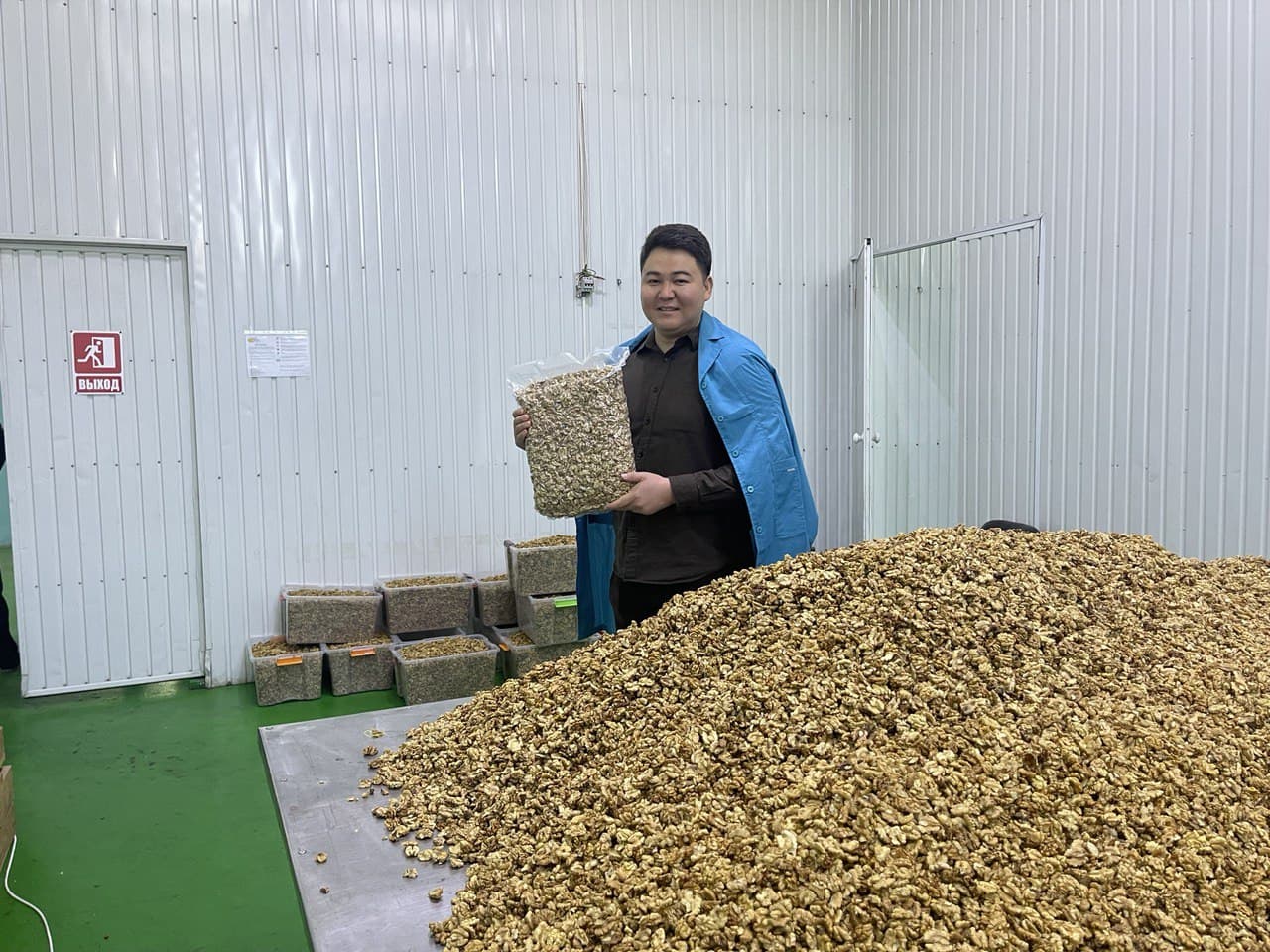 – Ассортиментте жаңгак, мисте, өрүк, жер жаңгак, кара өрүк, ит мурун, бадам бар. Кара кайналынын данегинен май чыгарабыз. 13 миң га жерибиз органик деген сертификациядан өткөн. Ал жерде өскөн токой, жапайы алмаларын Турцияга чай чыгарган заводго жөнөтөбүз. Бал менен бир канча Туркиянын жана Германиянын шаарларын камсыздайбыз.