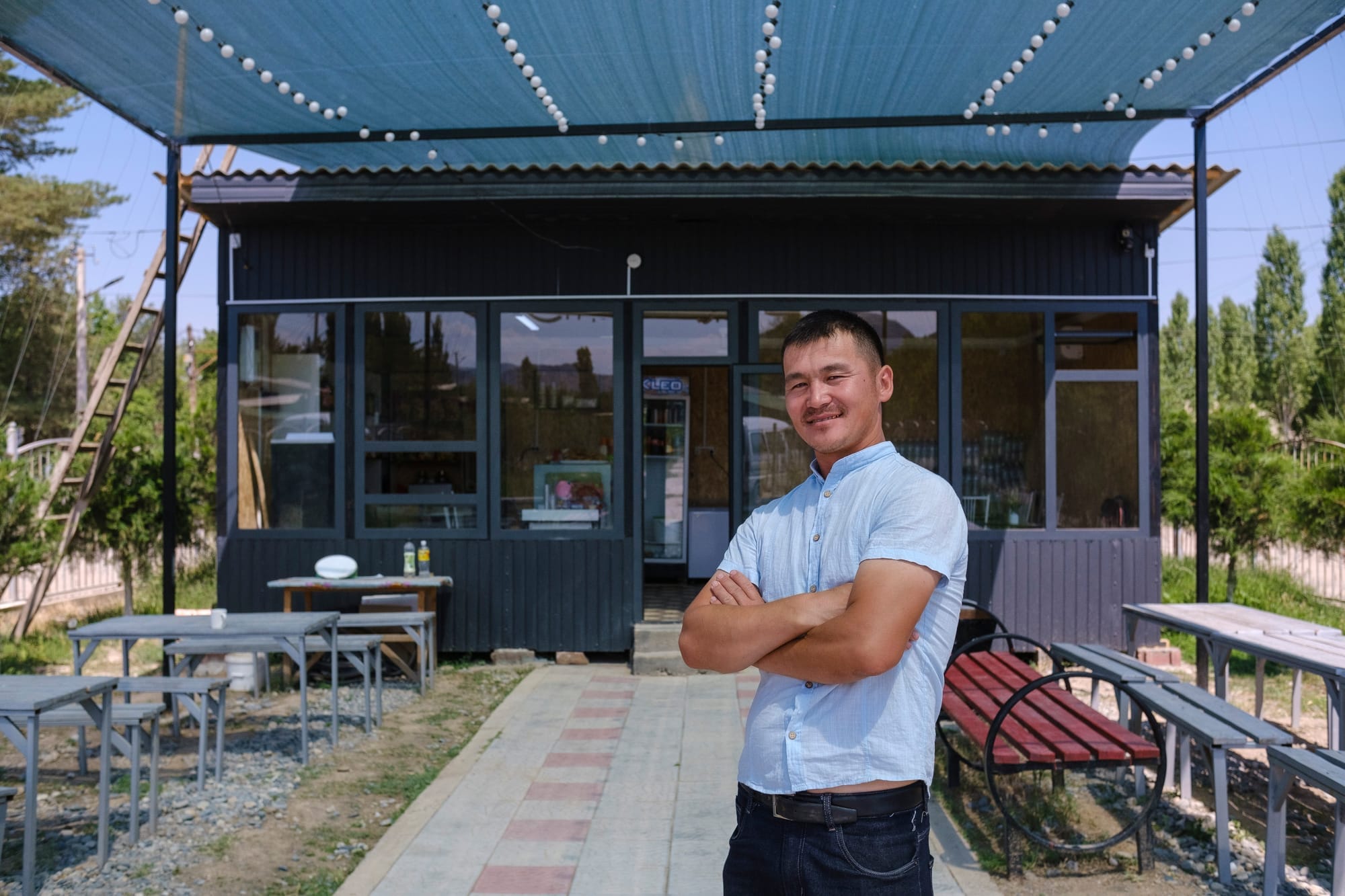 — Мен чет өлкөгө иштегени барганда пайдалуу бир адат таап алгам – айлык алган сайын акчанын бир бөлүгүн катып койчумун. Ошентип жыйып-терип отуруп бир нече жылда алгачкы жабдуу сатып алганга акчам жетип калды. Кафебизди азыркыдай кылып ачыш үчүн зарыл акчаны Улуу Британияда иштеп жүрүп таптым. Мурда мал-жандык кармап жүрчү элек, ошону сатып жибергенибиз да кошумча огожо болду. Анан албетте, кошо каржылашуу форматындагы колдоо негизги роль ойноду. Жалпы жонунан үй-бүлөлүк ишке 500 миң сом жумшадым. Эл аралык миграция уюму (ЭМУ) 290 миң сом өлчөмүндө жардам бөлүп берди.