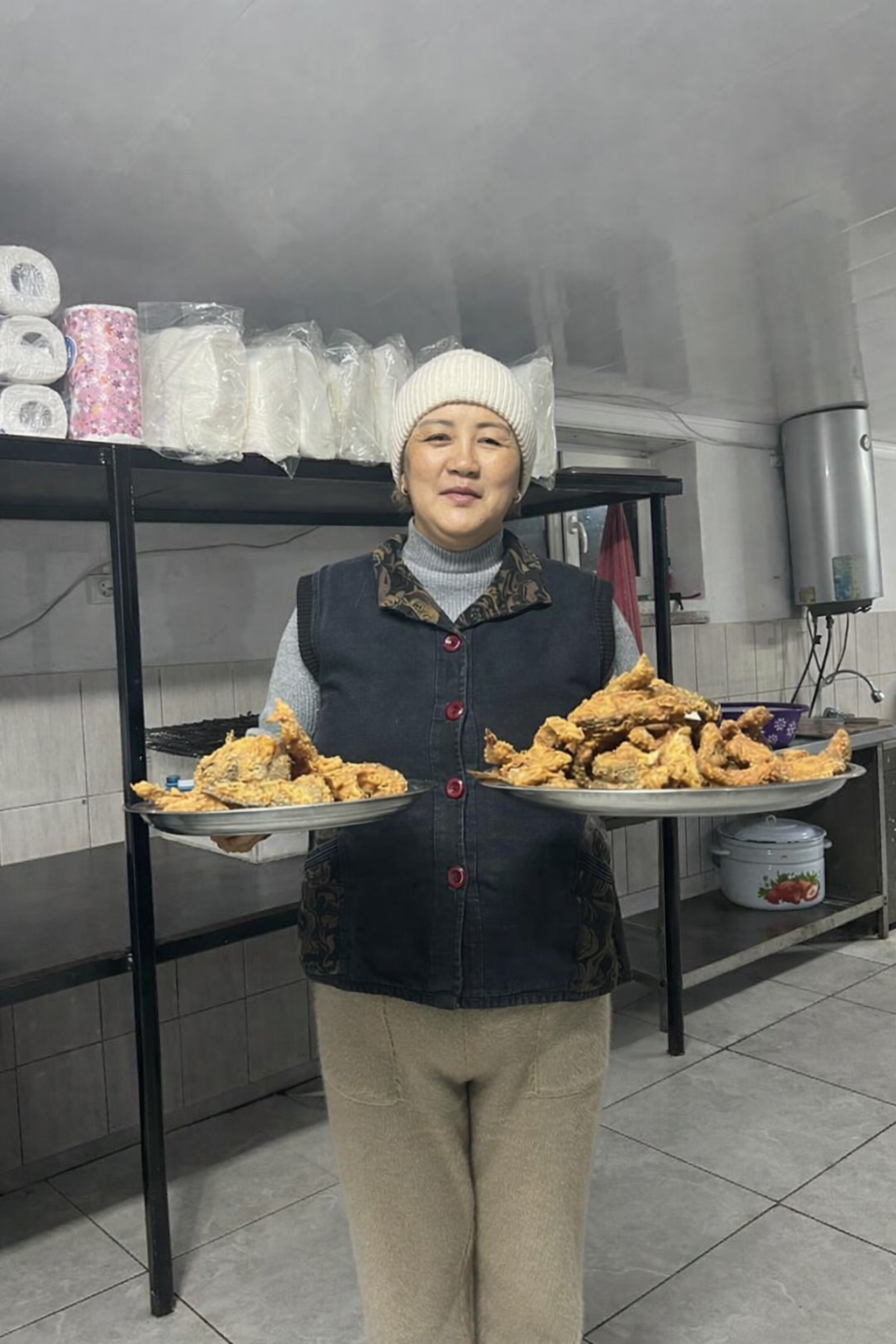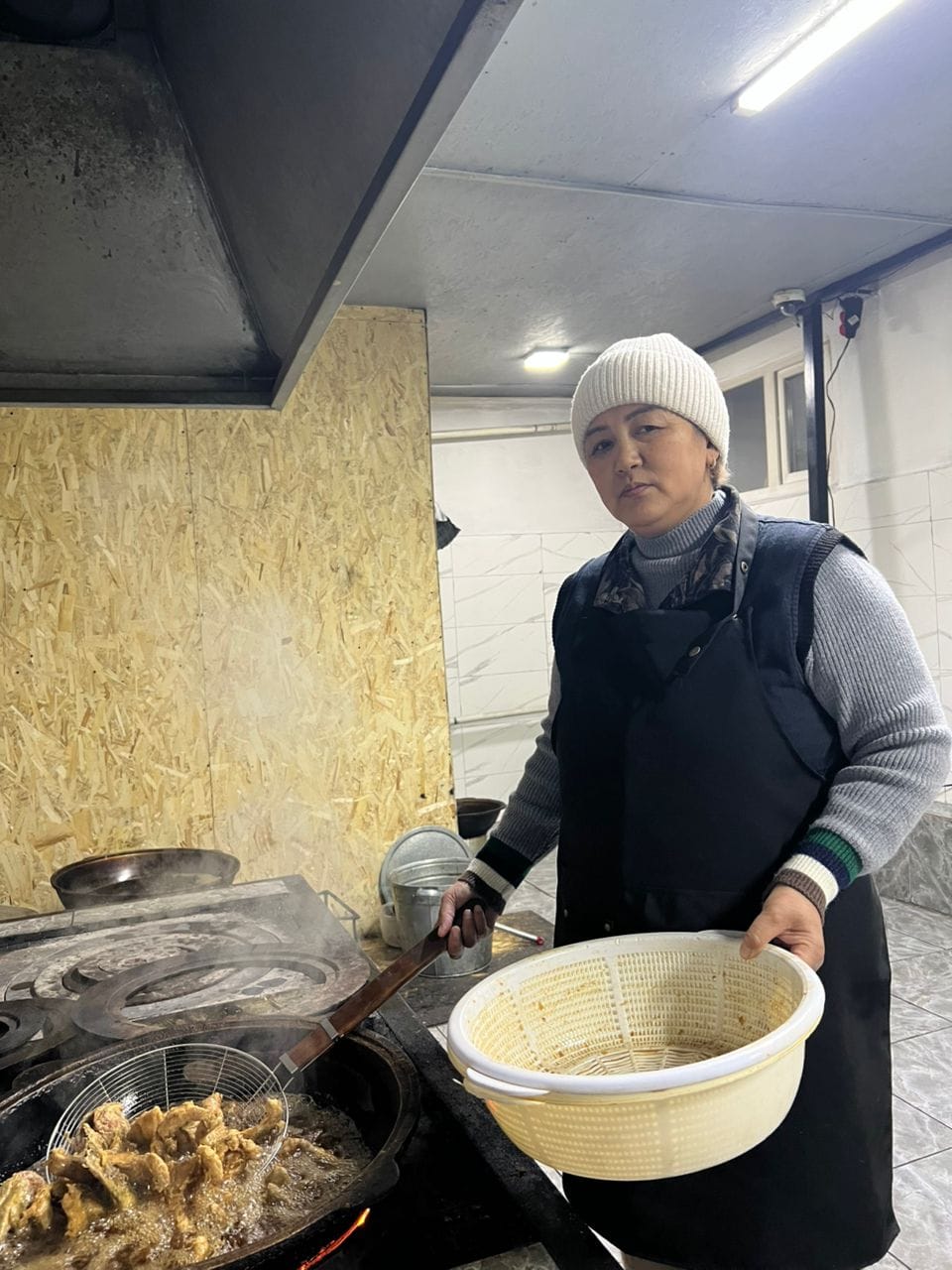 Балык чарбаны башкаруу оңой эмес. Ошентсе да 6 жылдан бери иштеп, көптөгөн кардарларды таптык. Азыр орозо кезде күнүнө 200дөй кишини тейлеп жатабыз. Албетте жалгыз баарына жетишүү мүмкүн эмес. Иштин көбү өзүбүздүн үйбүлөө мүчөлөрүнө жүктөлгөн. Жолдошум балык чарбасын карайт. Уулум керектүү азык-түлүк менен камсыздап, кассаны көзөмөлдөйт. Кызым ички жасалга, дизайн менен алек, ал эми мен бардык жоопкерчиликтүү иштерди жүргүзөм. Азыркы тапта 12 киши иштеп жатат. Сезон убагында 20дан ашуун кишини иш менен камсыз кылабыз. Алар ашпозчулар, идиш жуугучтар, официанттар, балык сойгон балдар ж.б. Андан сырткары атайын бухгалтерибиз да бар. Ал киши учет, отчет кылып, мамлекет алдында салык, соцфонд ж.б төлөмдөрдү убагында жүргүзүп турат.
