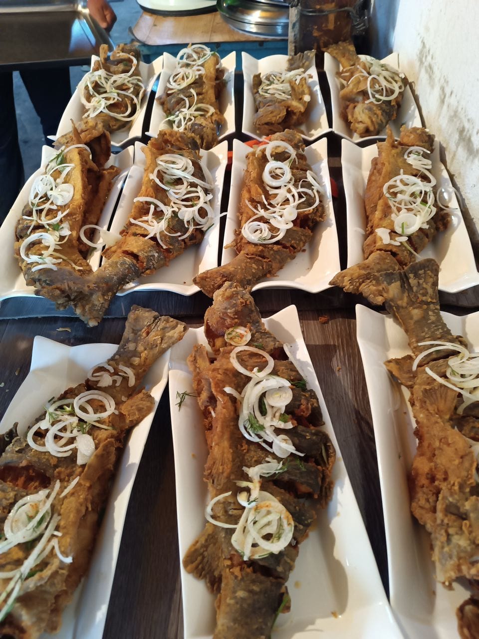 Башында кыйынчылык көп болду. Кышкы суукта курулуш иштерин жасап, муздак жерде жашап жаттык. Балыктар чоңоюп 1 кгдан ашканда бул жактан сатыкка кое турган жер таппадык. Анан суунун жээгине 1-2 боз үй тигип, балыкты бышырып сата баштадык. Биз Таласта биринчи ачылган балык болгондуктан, элдер бир-бирине кабарлап, биздин балыкка келе башташты. Биз эшикте кемеге коюп, ошого 1-2 кгдан балык жасап сатчык. Кийин балыкка келген элдин саны көбөйүп олтуруп, 5-6 жылда биз бир топ өсүштөргө жетиштик.