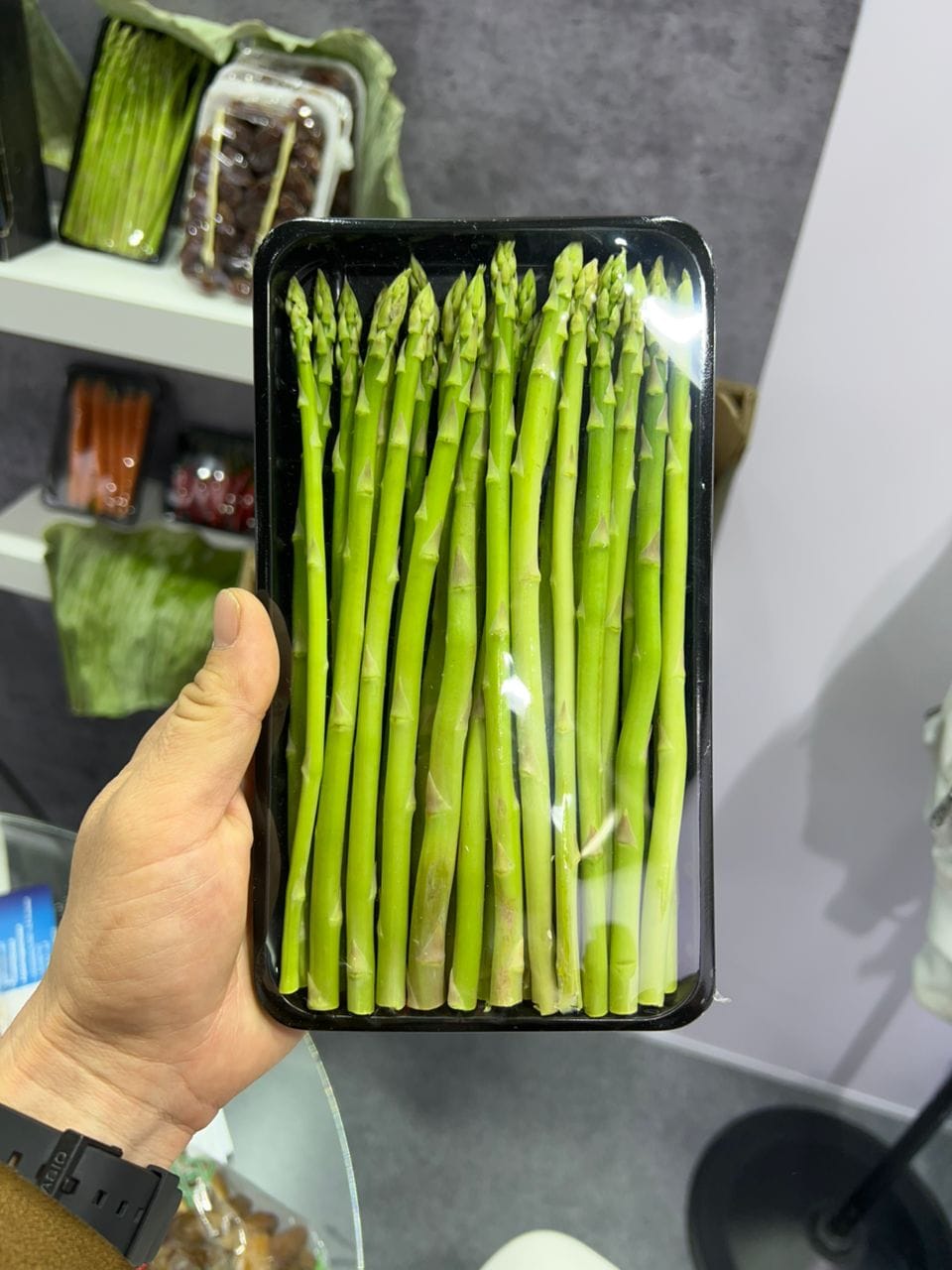 “Кыргызстанда биз өндүргөн спаржанын азыраагы эле калат. “Умай групп”, “Глобус”, СПАР дүкөндөрү менен иштешебиз. Базарларга да сатылат. Сыртка азырынча Казакстан менен Россияга экспорттолуп жатат. Ошону менен бирге эле көргөзмөлөргө чыкканда таанышып, келечекте кызматташалы деген кардарларыбыз да арбын. Алсак Гонконг, Макао, Сауд Арабиясы, Оман өлкөлөрүнөн, Дубайдан жумасына 2-3 тоннадан алабыз дегендер бар жана келечекте алар менен да иштешебиз.