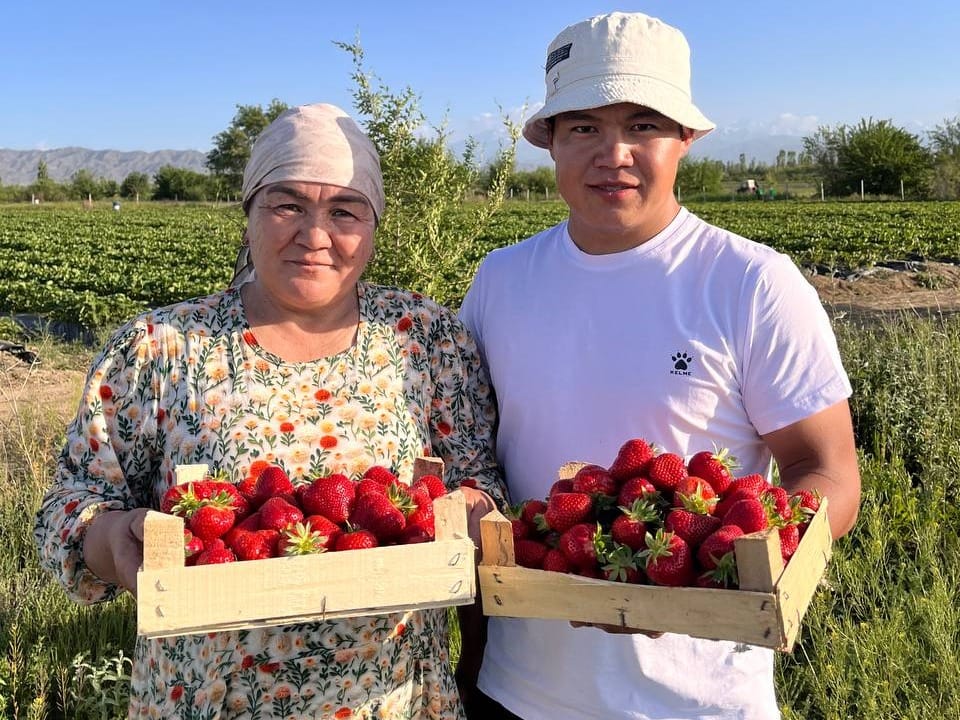 Үч жыл мурда 25 сотых жерди арендага алып, 500 миң сом карыз алып, иш баштагам. Негизи ишти толугу менен өзүм башкарам. Биринчи жылы апам жардам берди, былтыр жана быйыл апам жок эле, өзүм жалгыз жетишип жатам. Баарын өзүм таразалап көрүп, жакшы түшүм алгандан кийин, аянтты кеңейтсем, мындан да жакшы натыйжа болооруна көзүм жетти. Ошентип, экинчи жылы кулпунайдын талаасын дээрлик 1 гектарга жеткирип, 2 миллион сом киреше таптым. Карыздардан кутулуп, үйдү оңдоп-түзөдүм, машина алдым. Азыр болсо 1 гектар 20 сотых жер иштетип жатам. Анын 30 сотых жерин кулпунайлар батыраак бышсын деп, күнөскана кылып алгам. Өзүм деле иштебейм, жумушчуларды тартам. Түшүм алган кезде 30-40 кишиге чейин иштейт, жумуш аз кезде 10 чакты жумушчу болот. Аларга саатына 120 сомдон, түшүм чогулткандарга ящигине 20 сомдон (2 кг) төлөп берем.