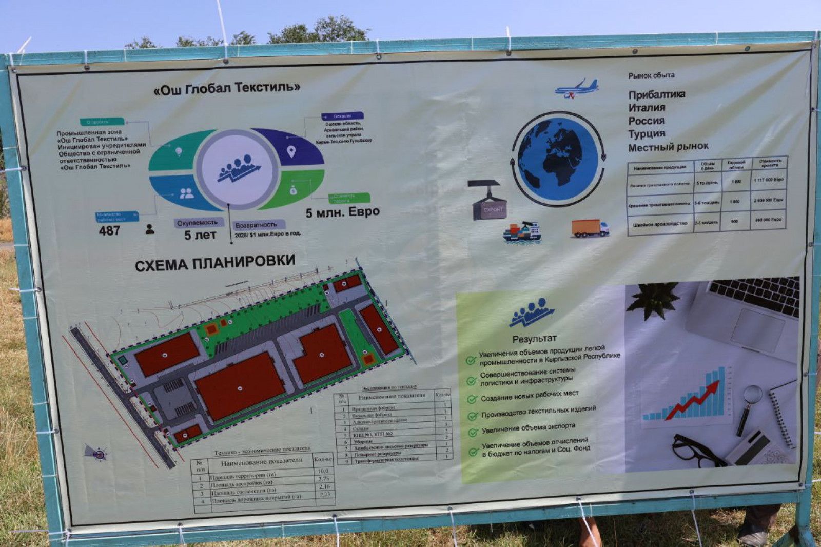 Мындан тышкары Араван районуна караштуу Керме-Тоо айыл аймагында «Ош Глобал Текстиль» ЖЧК тарабынан пахта буласынан жип ийрүүчү жаңы курула турган фабриканын долбоору менен таанышты. Пахтадан кездемелерди жана кийимдерди чыгарууну көздөгөн бул фабрикада 1500дөн ашуун адамды жумуш менен камсыз кылуу пландалууда.