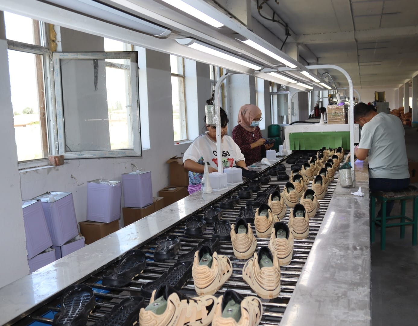 Такталгандай, кытай инвесторлорун тартуу аракети менен ачылган ишканада учурда 63 жумуш орду түзүлүп, 1 линия менен күнүнө 2000 даана спорттук бут кийимдер тигилүүдө. Ишкана болжол менен бир айда 60 миң, бир жылда 720 миң жуп бут кийим өндүрө алат. Мында иштегендердин 17си кытай мастерлери болсо, калган 46 жумушчу жергиликтүү тургундар.