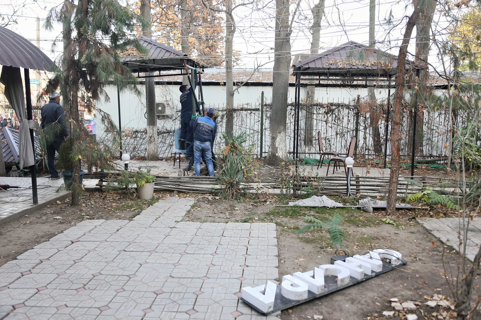 Учурда буфердик зонада жайгашкан Green Hоuse кафесин, Султан Ибраимов атындагы Ош Улуттук драма театрынын алдындагы жашыл аймакта жайгашкан «Сансара» кафесин, ошондой эле гүл жана соода-сатык багытындагы түйүндөрүн алып салуу иштери жүрүп жатат.