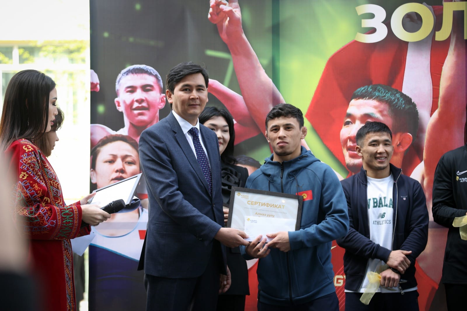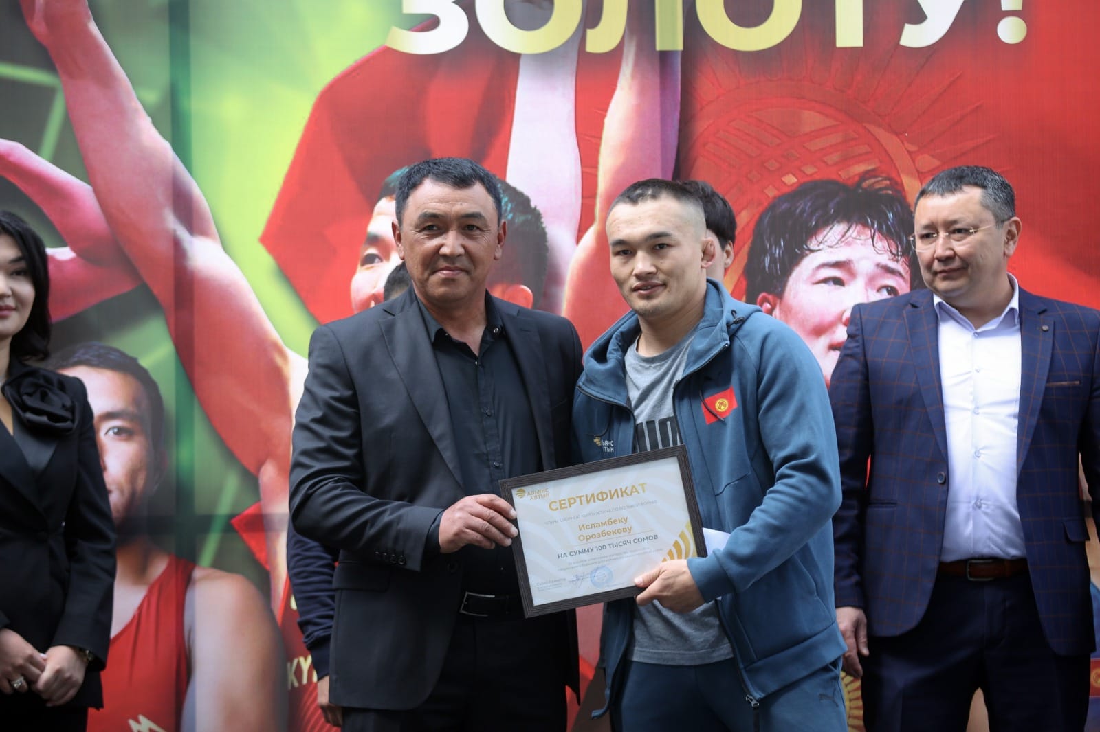 Мындан тышкары, спортчулар Мээрим Жуманазарова, Үзүр Жузупбеков, Бекзат Алмаз уулу, Калидин Асыкеев, Раззак Бейшекеев, Исламбек Орозбеков, Тынар Шаршенбеков жана Атабек Азизбеков 100 миң сомдук сертификаттарга ээ болушту.