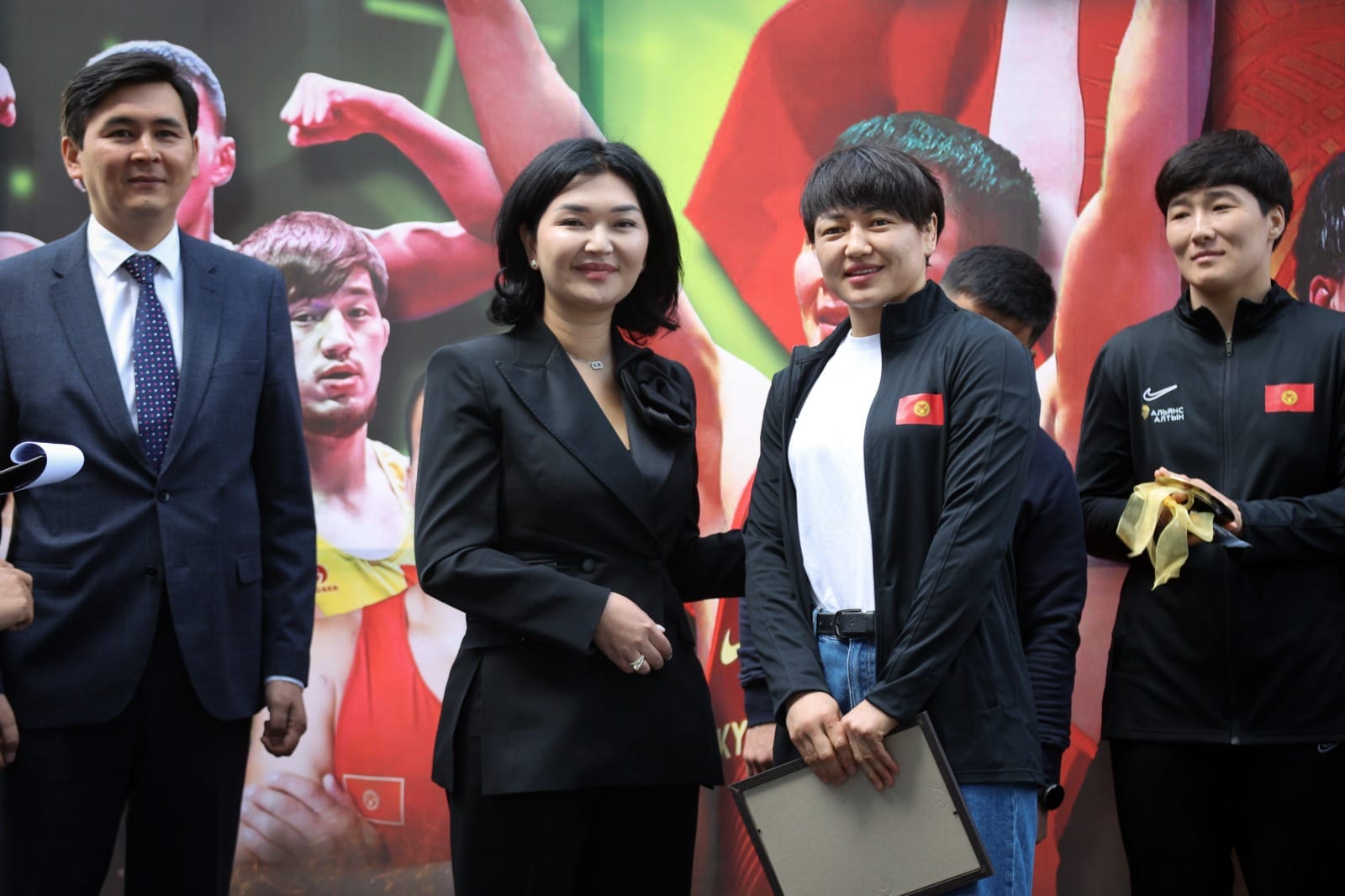 Дүйнө чемпиону болгон Жоламан Шаршенбеков жана күмүш медалга ээ болгон Айпери Медет кызы бүгүнкү салтанаттуу аземде «Альянс Алтындан» жана анын өнөктөштөрүнөн Toyota үлгүсүндөгү автомобилдердин ачкычтарын алышты. Бул тууралуу ишкананын маалымат кызматы билдирди.