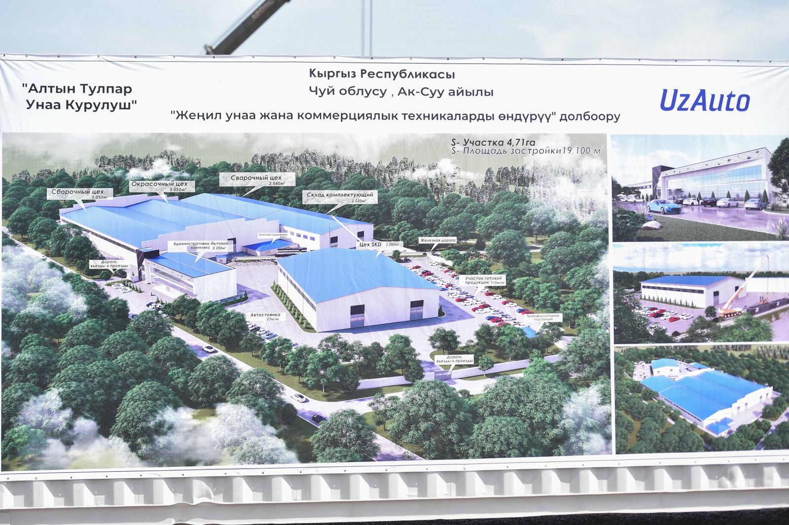 Заводду КРнын аймагында куруу боюнча макулдашуу Өзбекстандын президенти Шавкат Мирзиеевдин 2023-жылдын январында КРна болгон расмий сапарынын алкагында жетишилген. Алгачкы этапта заводдун өндүрүштүк кубаттуулугу жылына 10 миң автоунааны түзөт жана 1000ден ашуун туруктуу жумуш орундары түзүлөт.