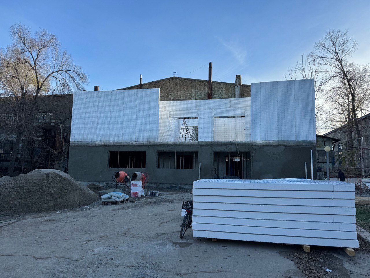 Алгач “Кыргызбетонкурулуш” продукциясынан, тагыраагы Emmedue инновациялык системасы аркылуу жасалган пенополистирол панелдеринен курулуп жаткан көргөзмө комплексинин курулуш иштеринин жүрүшүнөн кабар алды.