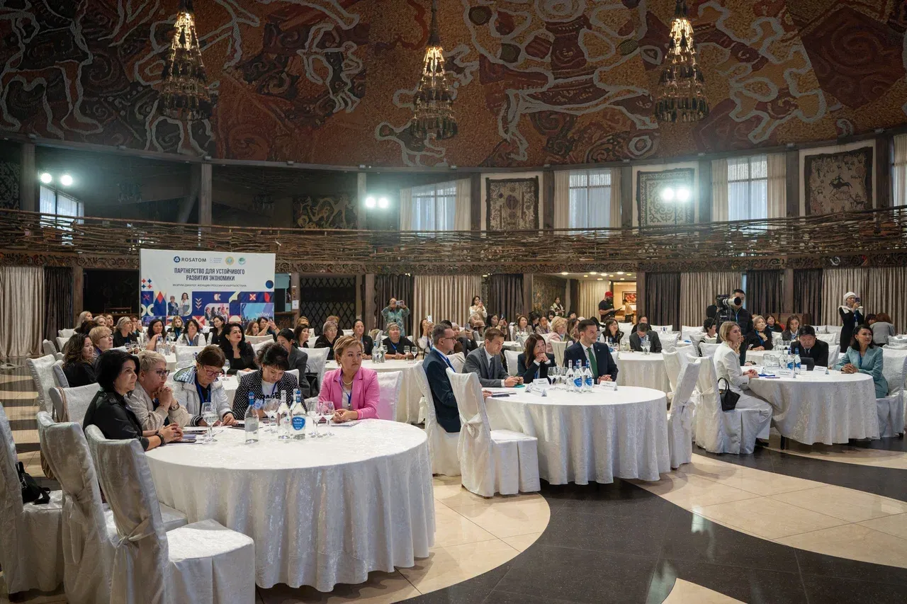 Кыргызстандагы “Росатом” Мамлекеттик корпорациясынын өкүлчүлүгүнүн башкы директору Дмитрий Константинов өз сөзүндө өлкөнүн экономикасындагы акыркы оң өзгөрүүлөргө жана аялдардын ага кошуп жаткан салымына токтолду.