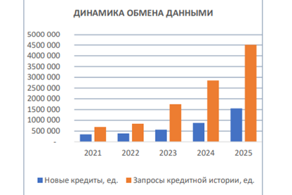 Жалпысынан 230 ФКУ маалымат алмашуу системасынын катышуучулары болуп саналат. Анын ичинде 20 банк, 106 микрофинансылык уюм, 73 кредиттик союз жана 31 башка катышуучу бар. 2025-жылдын 3-чейрегинде Кредиттик бюро жаңы насыя жөнүндө 1 556 130 маалымат алган, алардын 984 057си банктар тарабынан, ал эми 572 073ү микрофинансылык жана башка уюмдар тарабынан берилген.