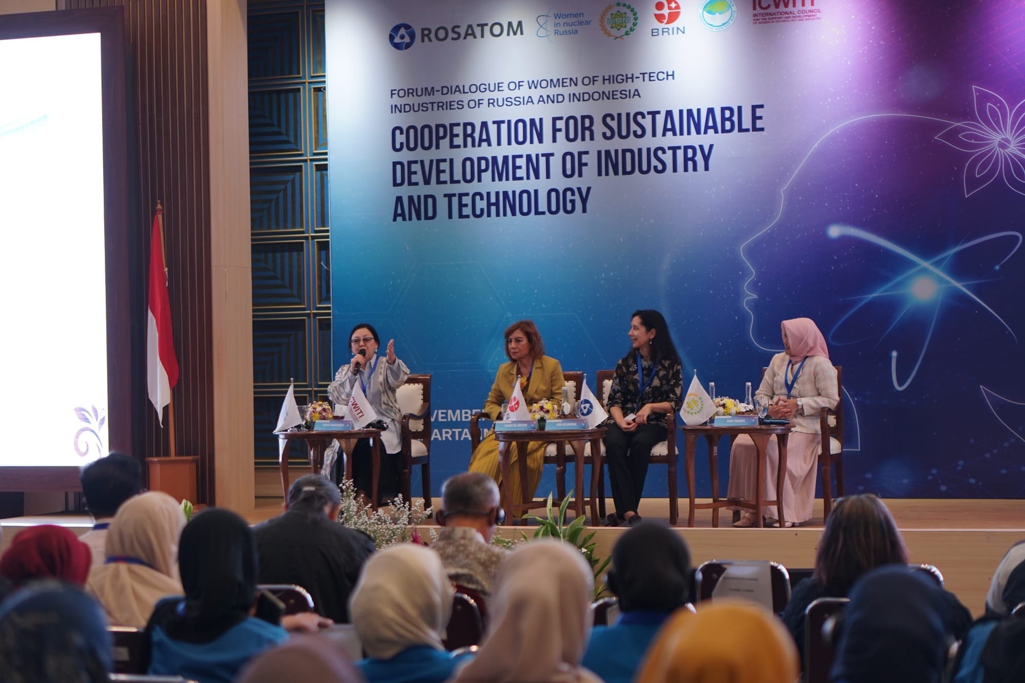 4-5-ноябрда, Жакарта шаарында Индонезия менен Россиянын жогорку технологиялык тармактарындагы «Өнөр жай жана технологияны туруктуу өнүктүрүү үчүн кызматташтык» аттуу аялдардын форуму болуп өттү. Иш-чараны «Росатом» мамлекеттик корпорациясы, Евразия аялдар форумунун кеңеши жана Индонезиянын ядролук коому (HIMNI) уюштурду.