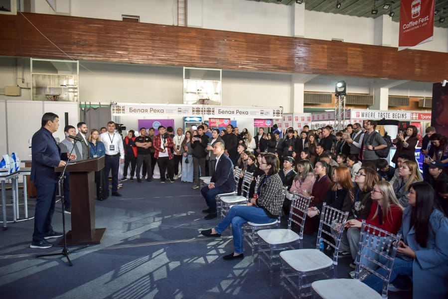 Бишкек шаарындагы К.Кожомкул атындагы спорт сарайда "COFFEE FEST KG" фестивалынын салтанаттуу ачылышы өттү. Ишчарага кофе индустриясынын адистерин жана бардык кофе сүйүүчүлөр чогулушту. Шаар мэри Айбек Джунушалиев да катышып, өз сөзүндө кофе индустриясынын жана экономиканын маанисин белгилеп өттү: