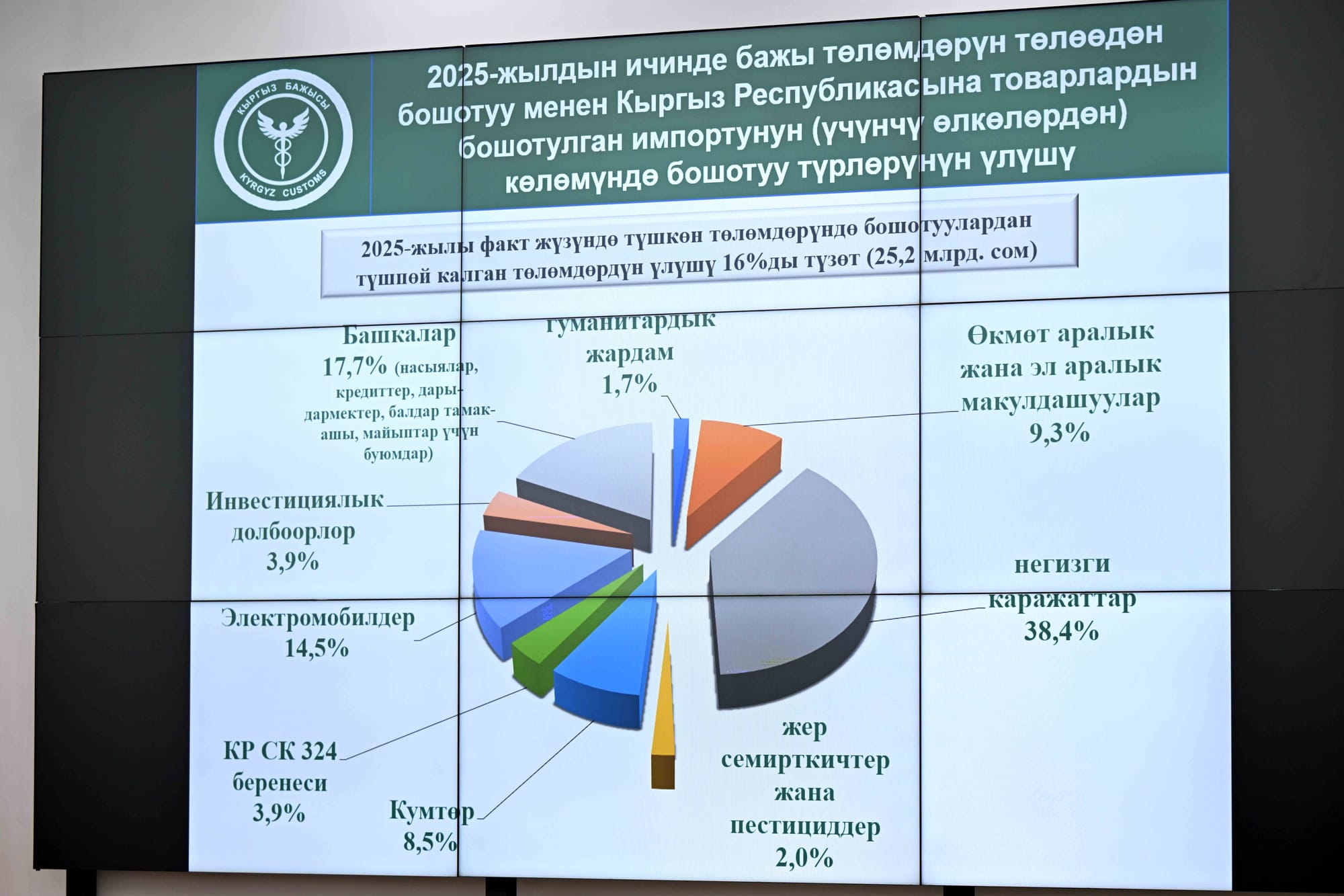 Ошондой эле бажы төлөмдөрү республикалык бюджеттин кирешесинин төрттөн бир бөлүгүн түзөрү, автоматташтыруунун эсебинен декларациялардын саны штаттык санды көбөйтпөстөн кыйла арткандыгы белгиленди.