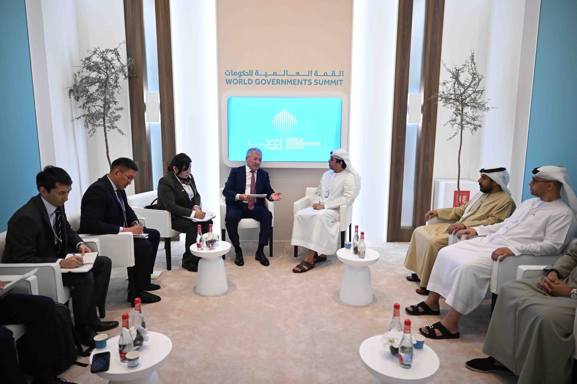 Министрлер Кабинетинин Төрагасы Адылбек Касымалиев Дүйнөлүк өкмөттөр саммитинин алкагында “Эмираттардын инвестициялык агенттиги” (Emirates Investment Authority) суверендүү инвестициялык фондунун аткаруучу директору Мохаммед Хамад Аль-Мехайр менен жолукту. Бул тууралуу Өкмөттүн басма сөз кызматынан билдиришти.