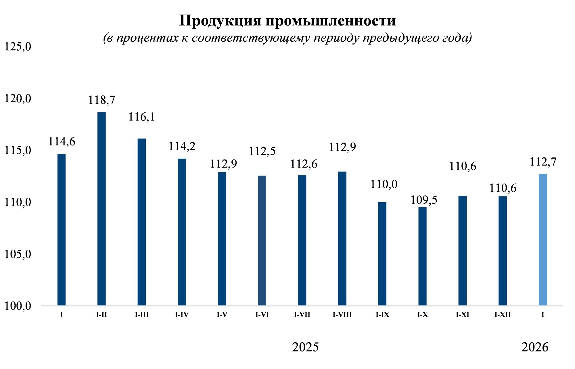 Билдирүүгө караганда, өнөр жай өндүрүшүнүн өсүшү 2025-жылдын январь айына салыштырмалуу химиялык продукцияны (38,9%), транспорт каражаттарын (36,1%), тазаланган мунай продуктыларын (21,1%), тамак-аш продуктыларын (13,6%) жана башка турмуш тиричиликке зарыл болгон өндүрүүнүн көлөмүнүн жогорулашы менен камсыз кылды.
