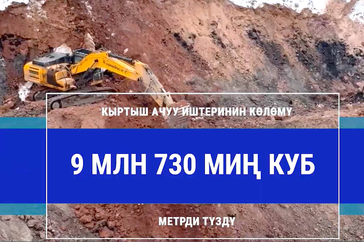 Бул көрсөткүч 2021-жылга салыштырмалуу дээрлик эки эсеге көп. Ошондой эле кыртыш ачуу иштеринин көлөмү 9 млн 700 миң куб метрди түзүп, пландан 20%дан ашык ашыгы менен аткарылган.