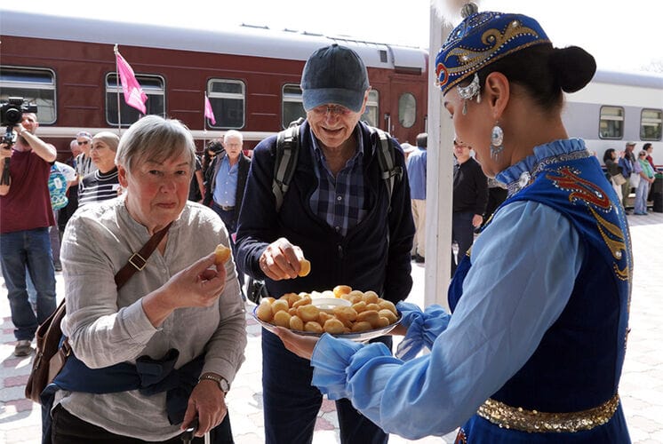 Конокторду майрамдык программа менен тосуп алышты. Туристтер үчүн музыкалык ансамблдин концерти уюштурулуп, кыргыз элинин колдонмо өнөр буюмдары тааныштырылды. Иш-чара "Кыргыз темир жолу" жана Туризмди өнүктүрүүнү колдоо фонду тарабынан өткөрүлдү.