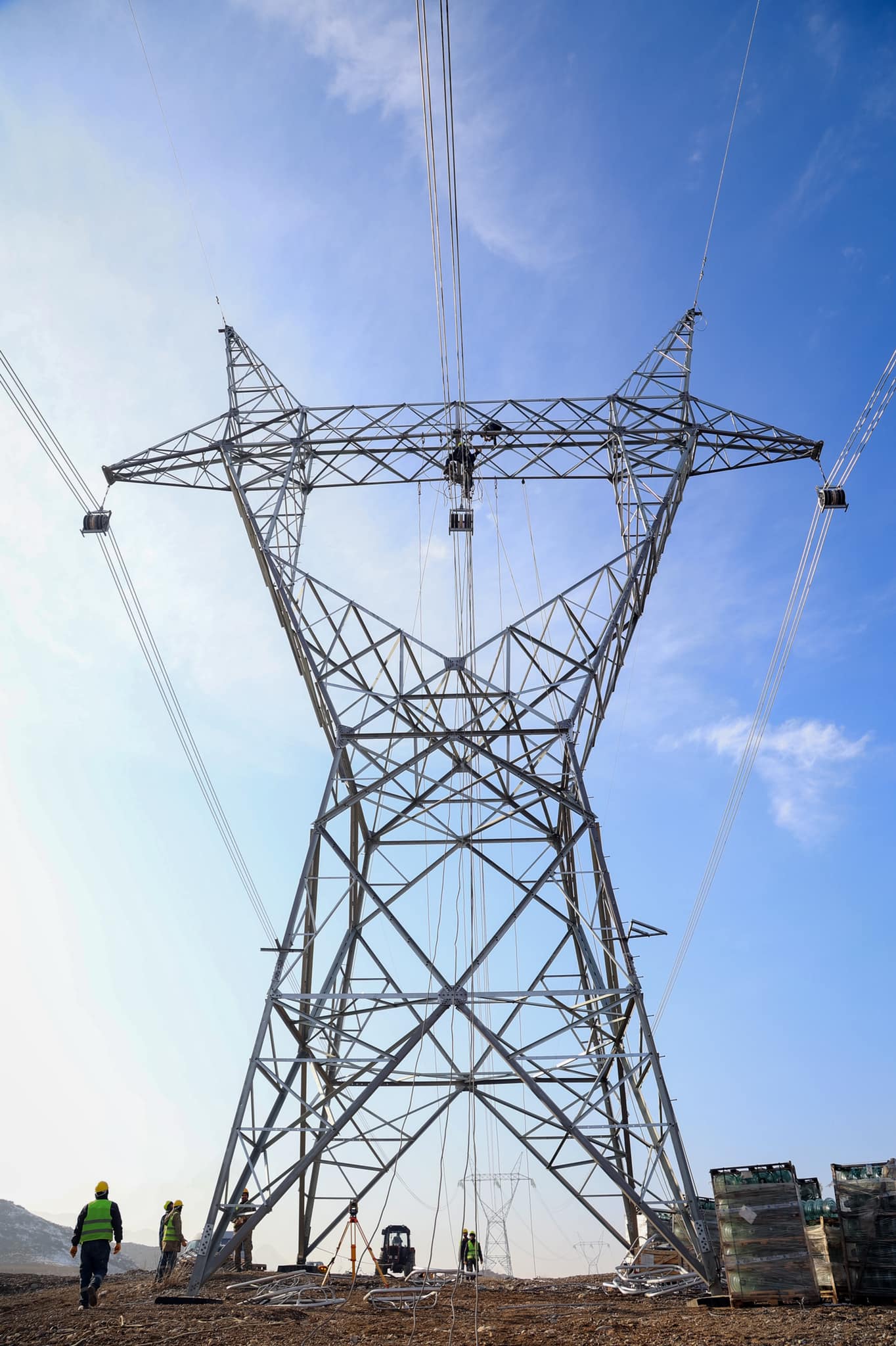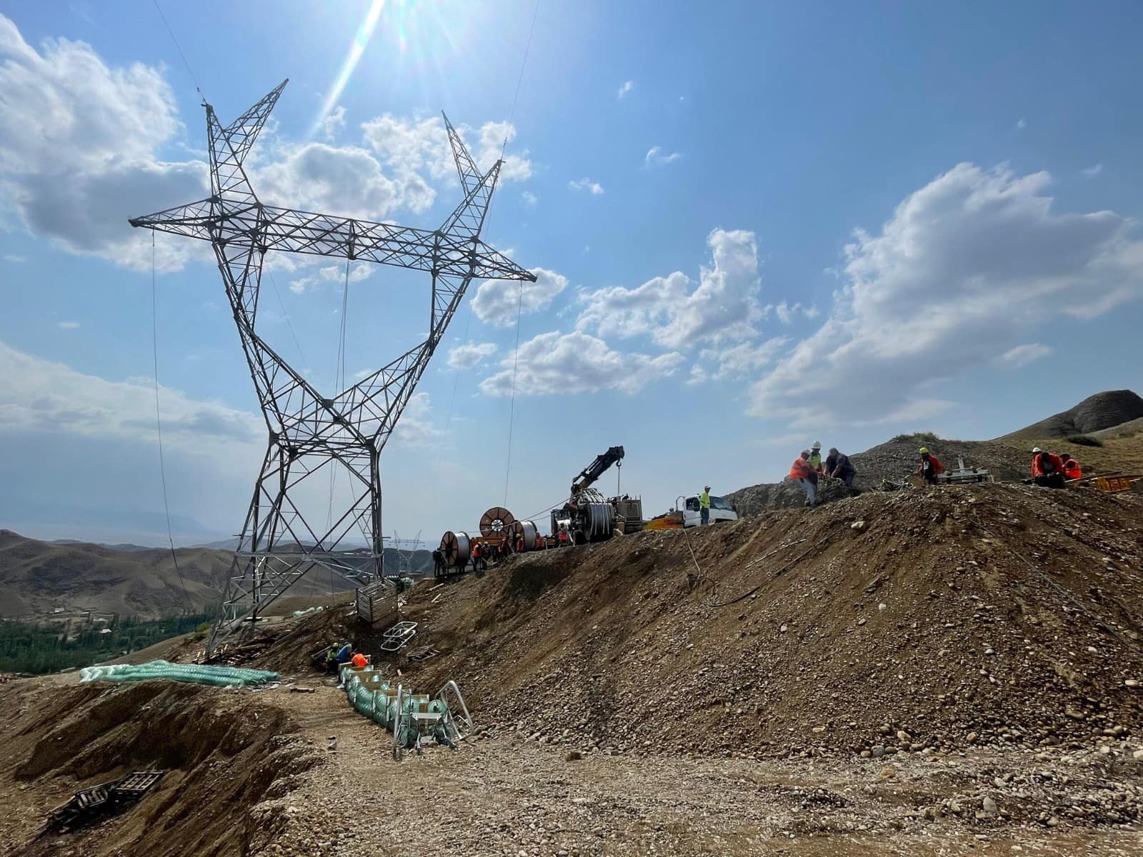 Азыркы учурда 1243 тирөөчтүн курулуш аянтчаларына кирме жолдорду куруу (100%), тирөөчтүн чуңкурларын казуу (100%), тирөөчтөрдү арматуралоо жана бетондоо (100%) иштери аяктады. Учурда тирөөчтөрдү орнотуу иштери жүрүп жатат, 1236 тирөөч (99%) орнотулду жана 265,78 чакырым (58%) зымдар тартылды.