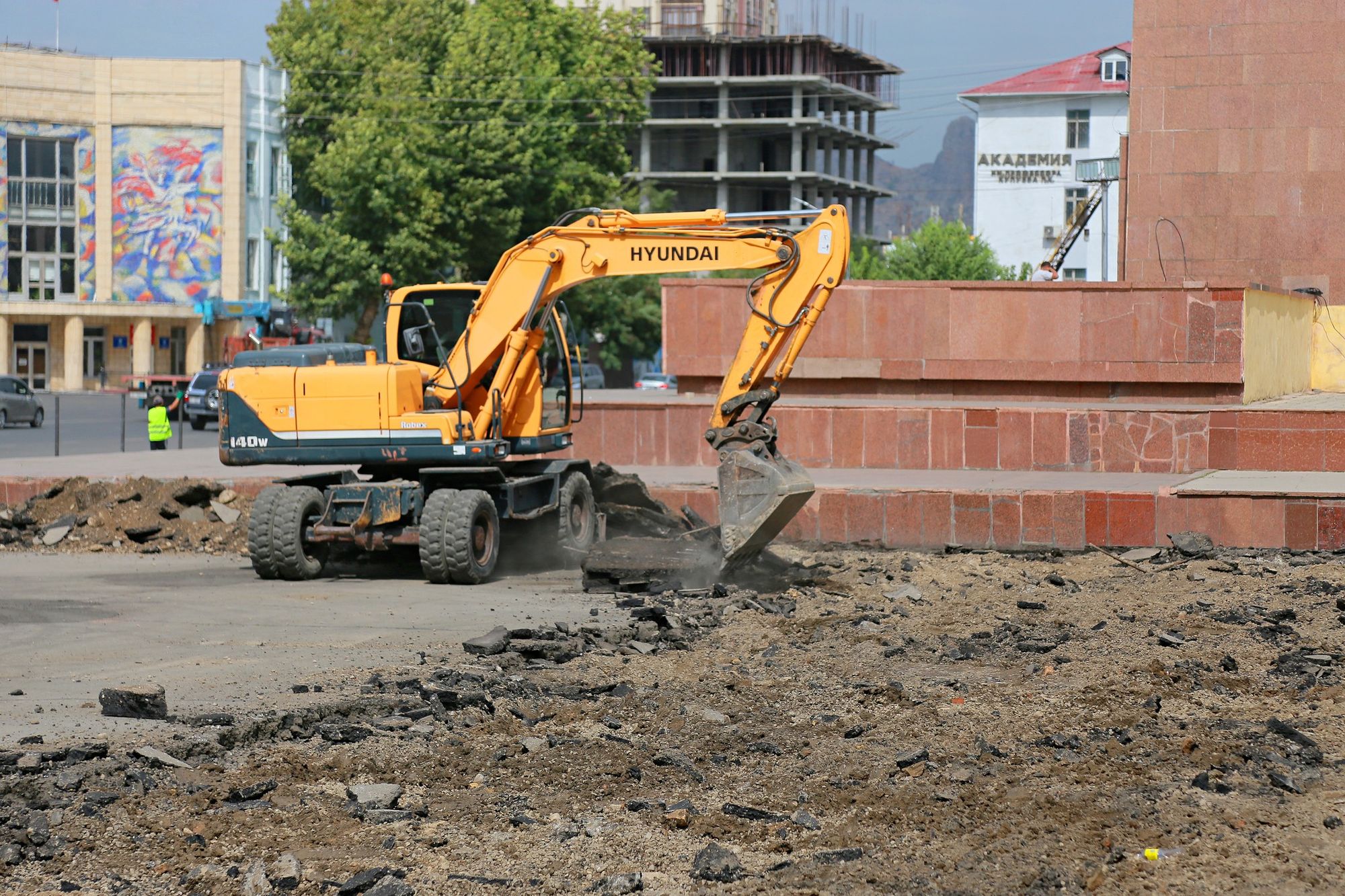 Долбоор боюнча борбордук аянтта жөө адамдар үчүн фонтандын курулушу жана Токтогул Сатылганов атындагы сейил бактагы жайкы театрды оңдоп-түзөө иштери башталды. Долбоорду толук аяктоо кийинки жылга болжолдонгон.