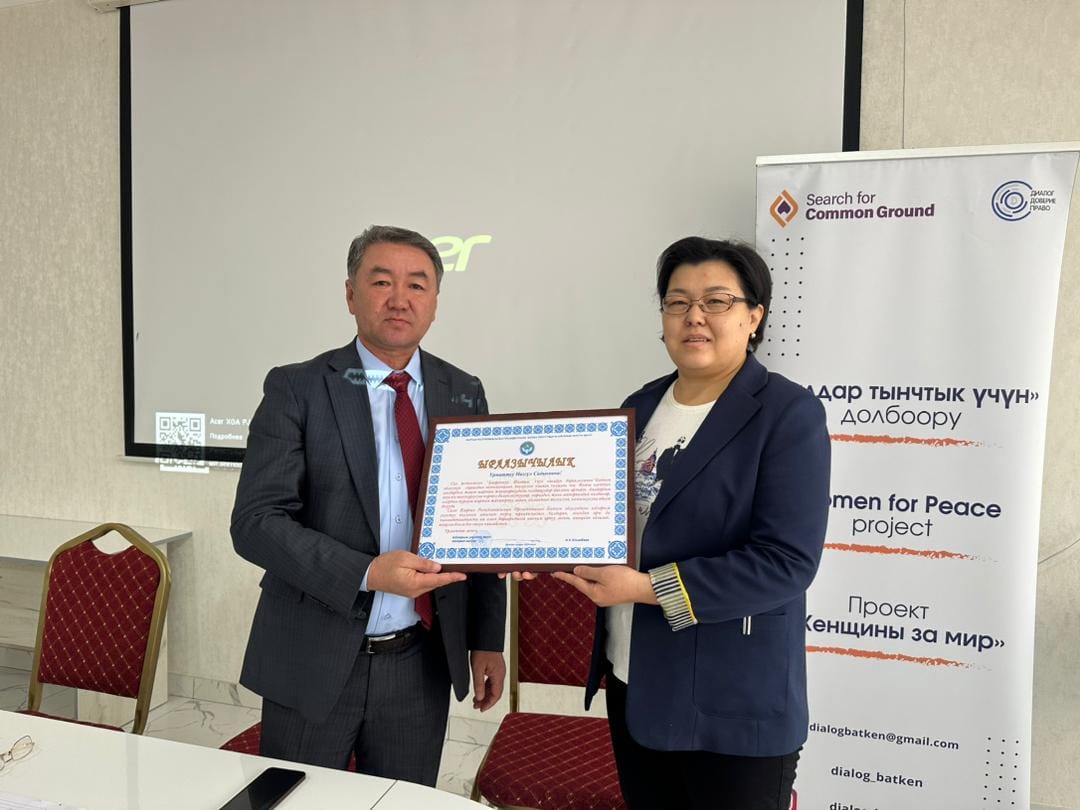 Аталган бирикме бул иш аракетти, Баткен облусунун чек ара аймактарында чыр-чатактан кийинки калыбына келтирүүгө жана тынчтык орнотууга аялдардын катышуусун күчөтүүгө багытталган «Аялдар тынчтык үчүн» долбоорунун алкагында ишке ашырды.