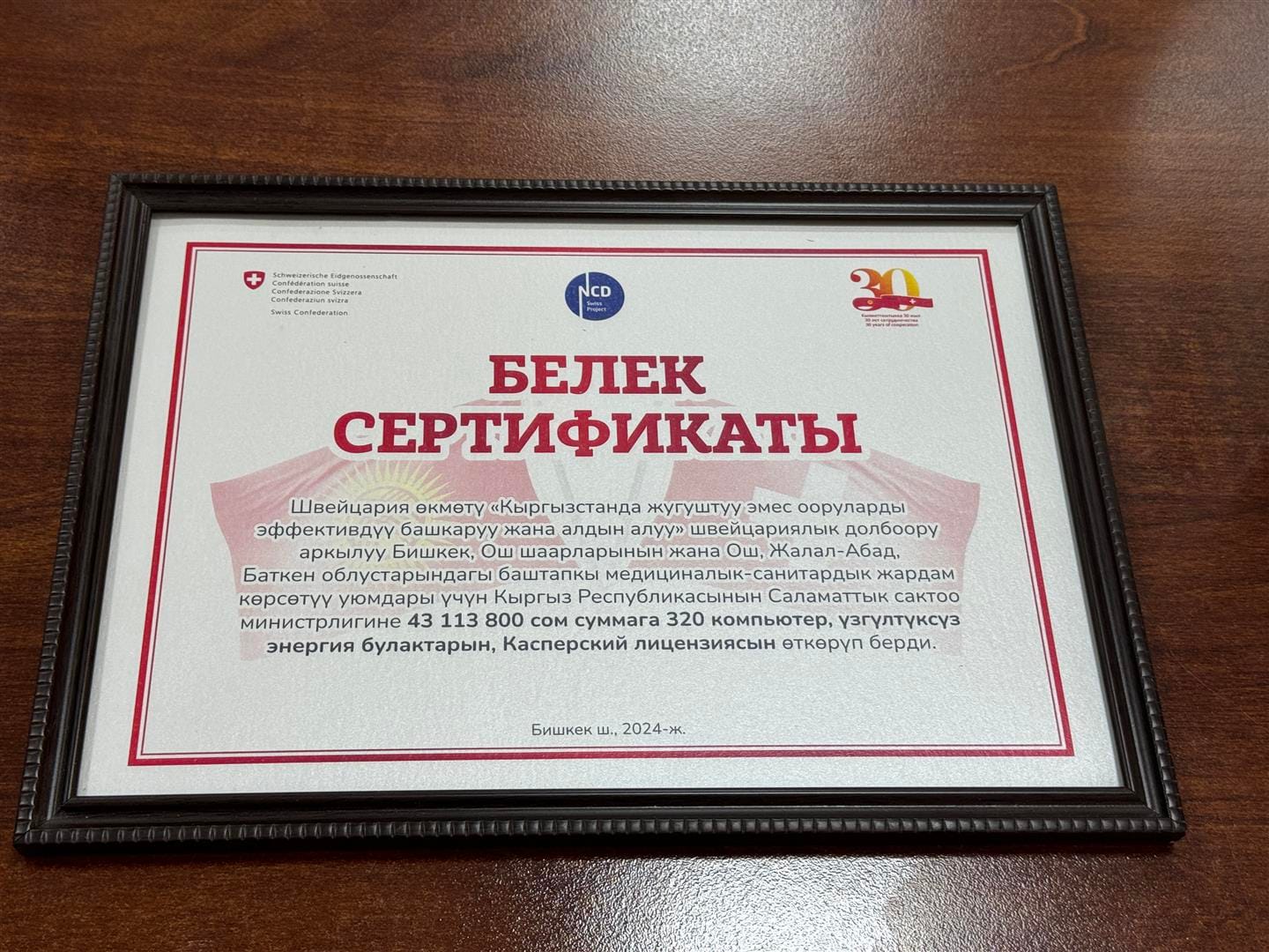 Бул IT жабдуулар Кыргызстандын түштүгүндөгү жана Бишкек шаарындагы 228 баштапкы медициналык-санитардык жардам уюмдарына өткөрүлүп берилди. Жабдуулар “Кыргызстандагы жугуштуу эмес ооруларды эффективдүү башкаруу жана алдын алуу” швейцариялык долбоорунун алкагында электрондук саламаттык сактоону чыңдоо максатында өткөрүлүп берилди.