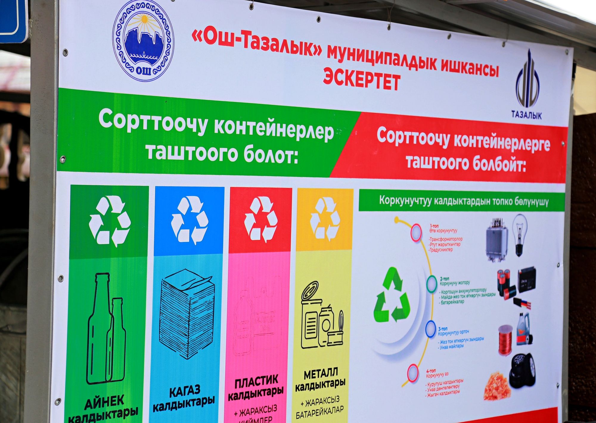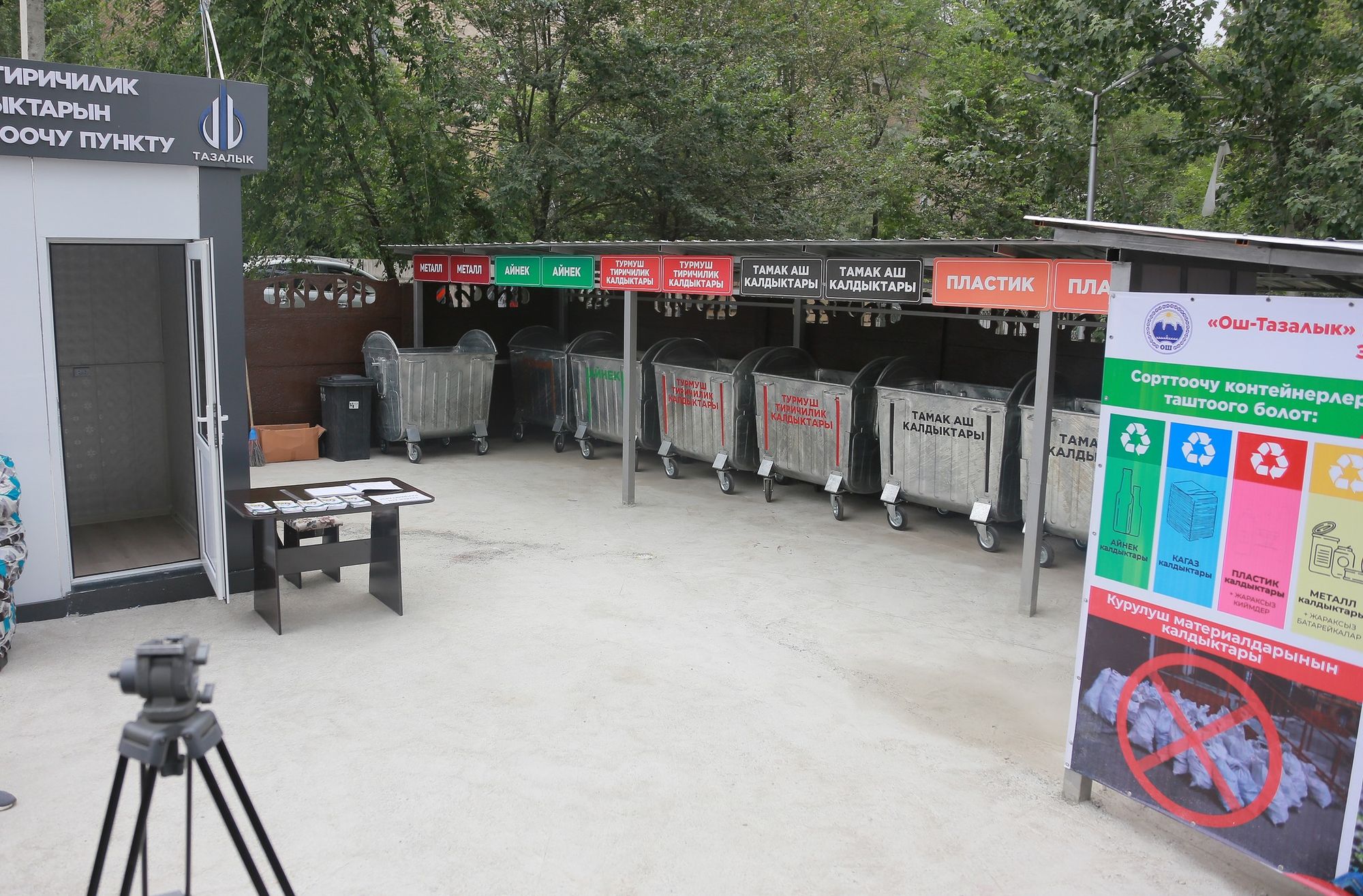 Маалыматка ылайык, пунктка кагаз, темир, пластик жана тамак аш калдыктарын бөлүп таштоо үчүн 12 даана жаңы, заманбап контейнерлер коюлган. Мында, ишкананын кызматкери жашоочуларга таштандыны бөлүп таштоо боюнча жеринде такай түшүндүрүү иштерин жүргүзүп, көзөмөлдөп турат.