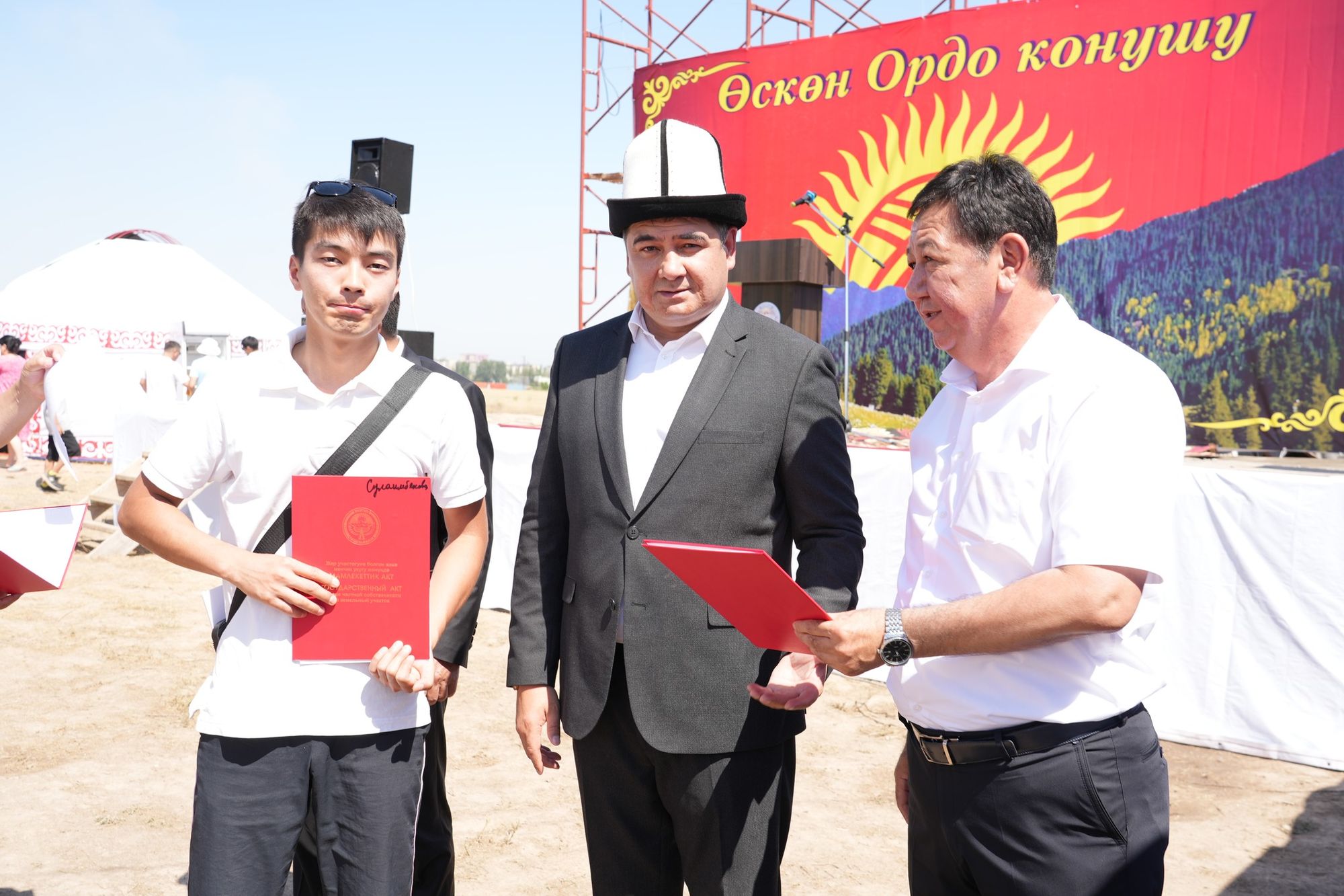 Көптөн күткөн окуянын урматына Өскөн-Ордо жаңы конушунун тургундары майрам уюштурушту: боз үй тигип, дасторкон жайып, маанай ачышты.