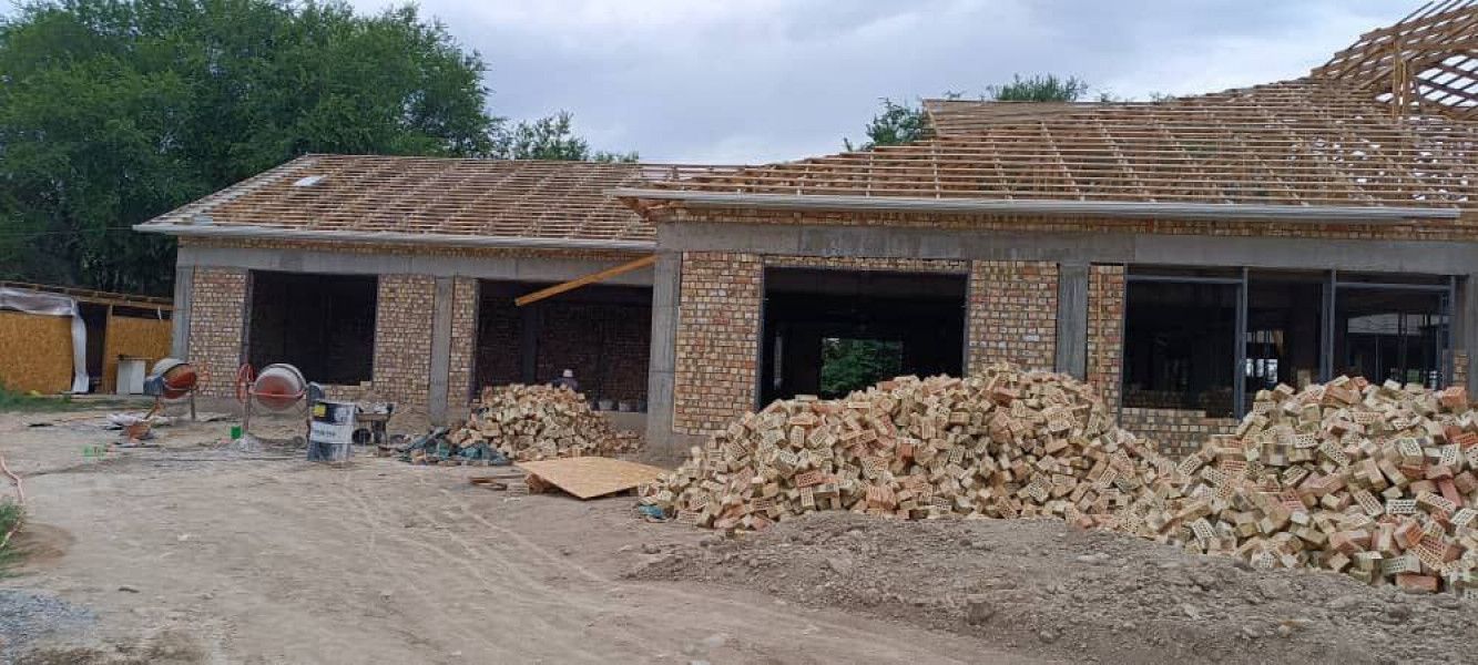 Учурда темир-бетон каркастарын куруу иштери аяктап, кирпич коюу жана чатырды жабуу иштери улантылууда. «Бай Мен» ЖЧКсы подряддык уюму иш алып барууда.