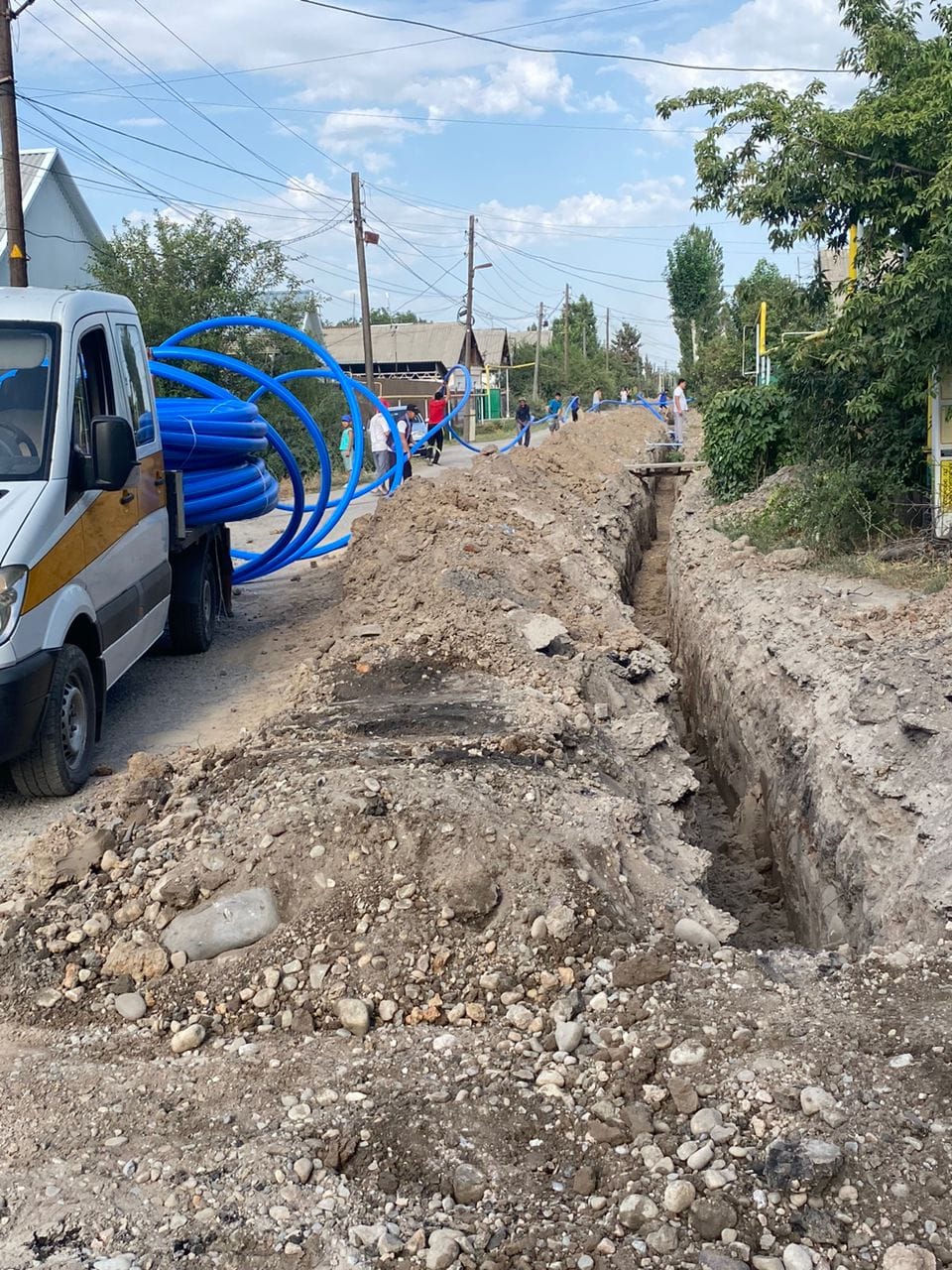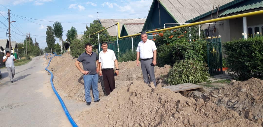 Суу түтүктөрүн айыл өкмөтүнө тапшыруу иш-чарасына райондун акими Алмазбек Осмонов, кайрымдуулук фонддорунан инвестиция тартуу боюнча Чүй облусунун куратору Туратбек Сыдыков катышып, казуу жана суу түтүктөрүн жаткыруу ишинин жүрүшү менен таанышышты
