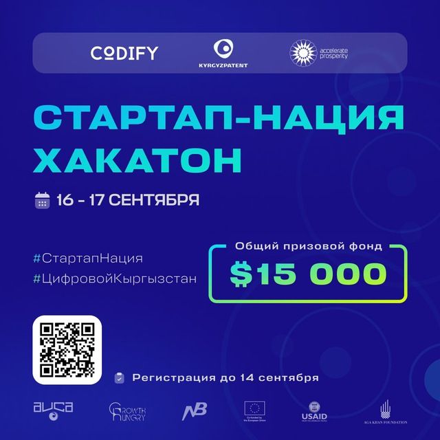 16-сентябрда Кыргызстандын бардык аймактарында экономиканын түрдүү тармактарына багытталган масштабдуу "УЛУТТУК STARTUP" хакатону башталат. Бул тууралуу иш-чараны уюштуруучулары Codify, Accelerate Prosperity жана Кыргызпатенттин маалымат кызматтары билдирди.