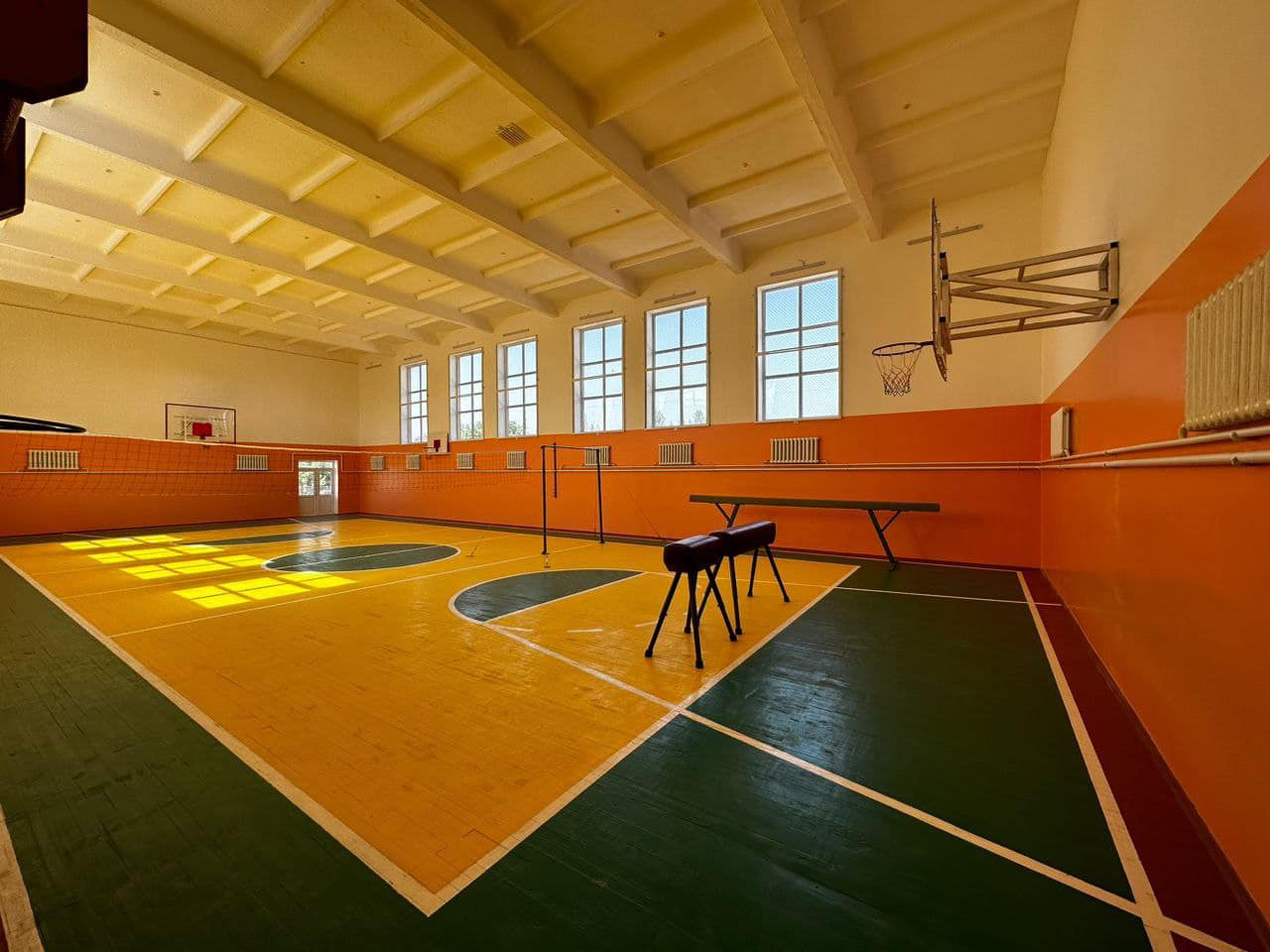 Жаңы курулган мектептер сапаттуу, ыңгайлуу жана заманбап ашкана, спортзал, концерттик зал, мектеп эмеректери менен толук камтылган.