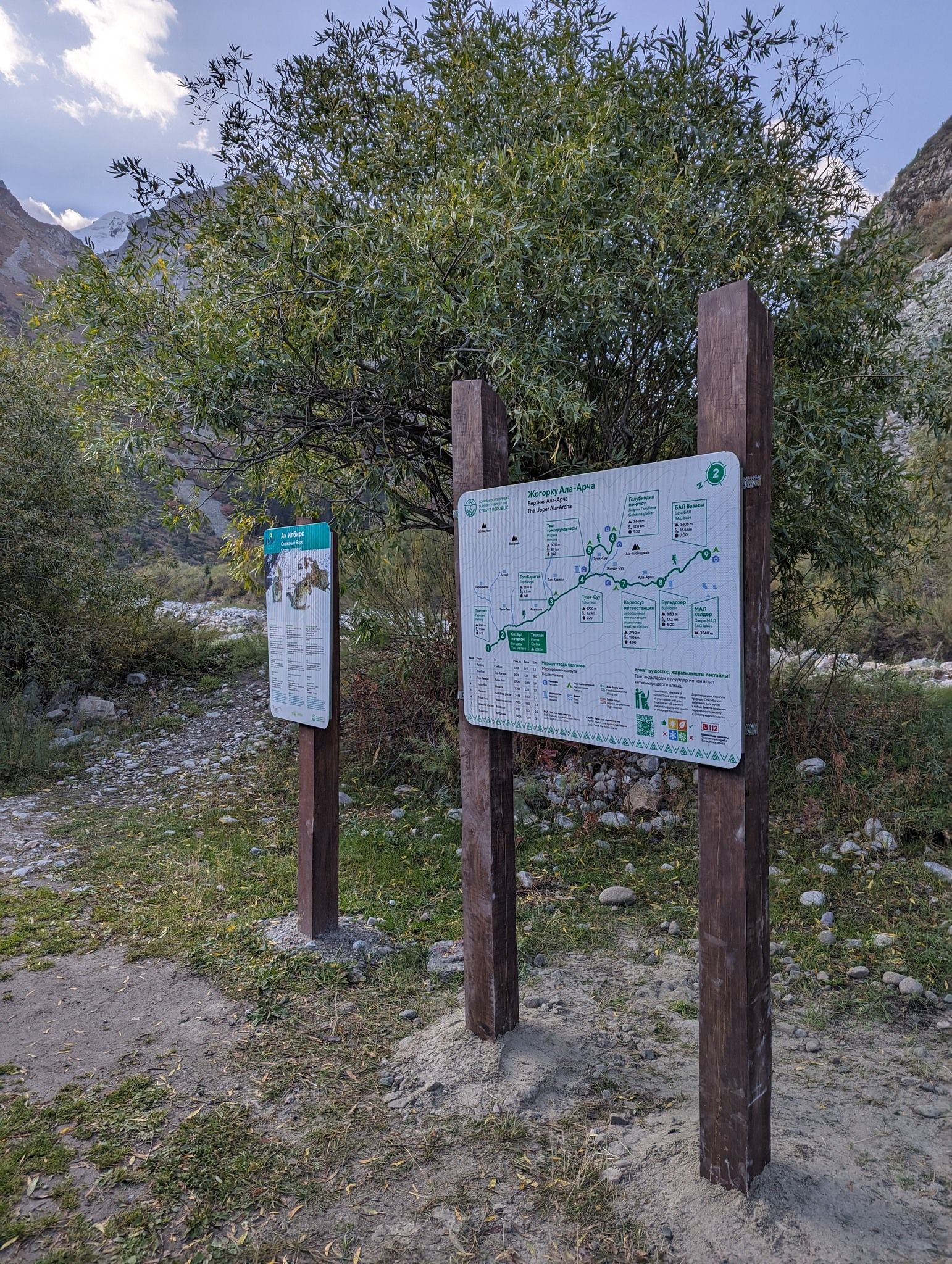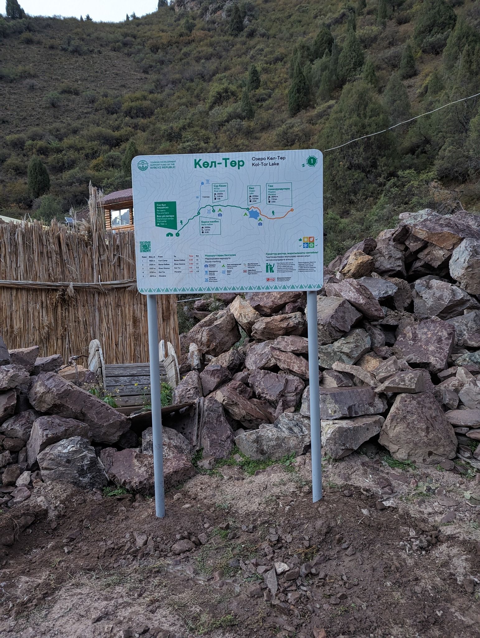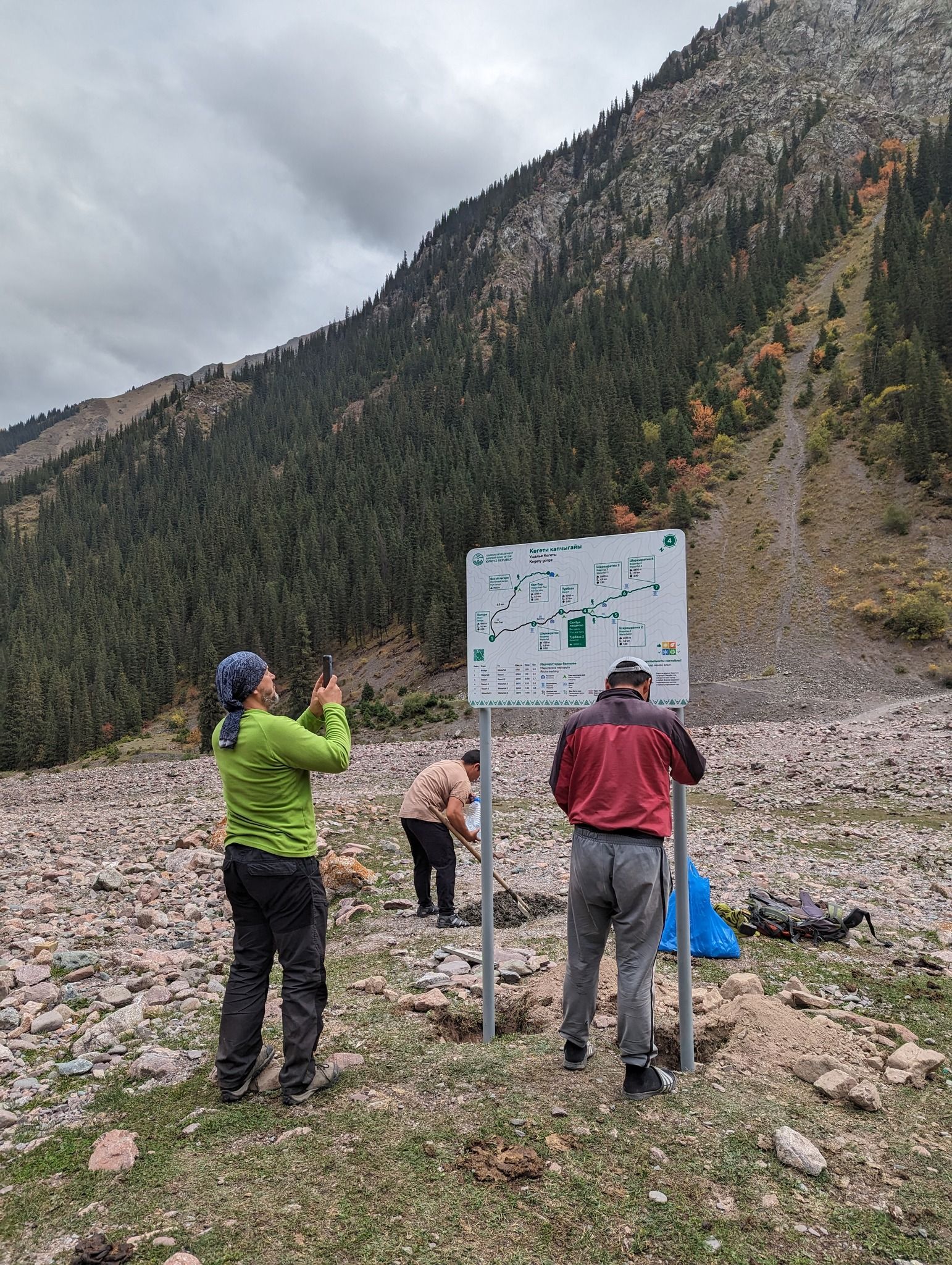 «Бул жолу эң татаал орнотуу болду: 30 километрден ашык жөө жүрүп, жол жаан-чачын, тайгак таштар, дарыяларды кечүү менен коштолот. Толук маалымат жана 6 белги коюлган стендди орноттук. Жол боёктун тактары менен белгиленген», - деди долбоордун жетекчиси Денис Будило.