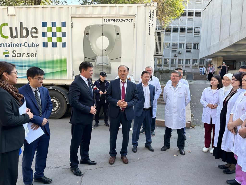 «Саламаттыкты сактоо министрлиги жана эл аралык кыргыз-жапон кызматташтыгынын алкагында түзүлгөн меморандумдун негизинде, гуманитардык жардам катары көчмө мобилдик компьютердик томография убактылуу колдонууга бир жылдык мөөнөткө берилген. Биздин адистер аталган медициналык жабдыкты колдонууну өздөштүрүп, эми аймактардагы калктын саламаттыгын акысыз текшерүүгө жөнөтүлүп жатат. Нарын облусунундагы бир катар аймактарды кыдырып келген соң, Ош облусунун Алай районуна сапарын улайт», - деди депутат.