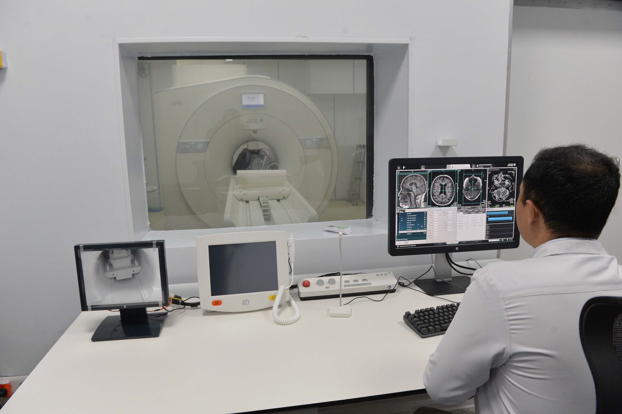 Андан соң Акылбек Жапаров Улуттук госпиталдын магниттик-резонанстык томография аппаратынын иши менен таанышты.