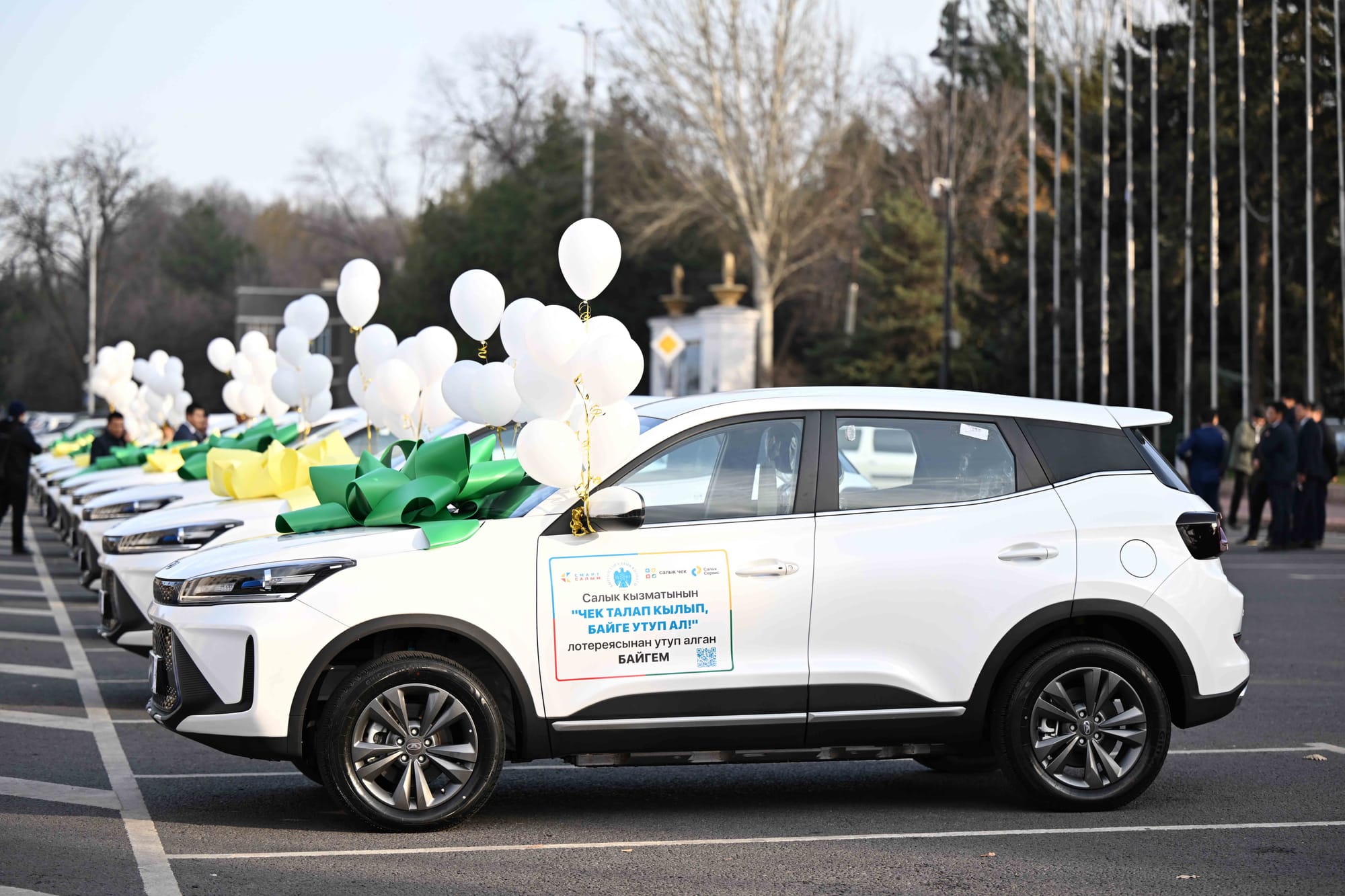 Министрлер кабинетинин төрагасы Акылбек Жапаров Салык кызматынын «Чекти талап кылып-байге утуп ал» лотереясынын жеңүүчүлөрүнө сыйлыктарды тапшырды.
